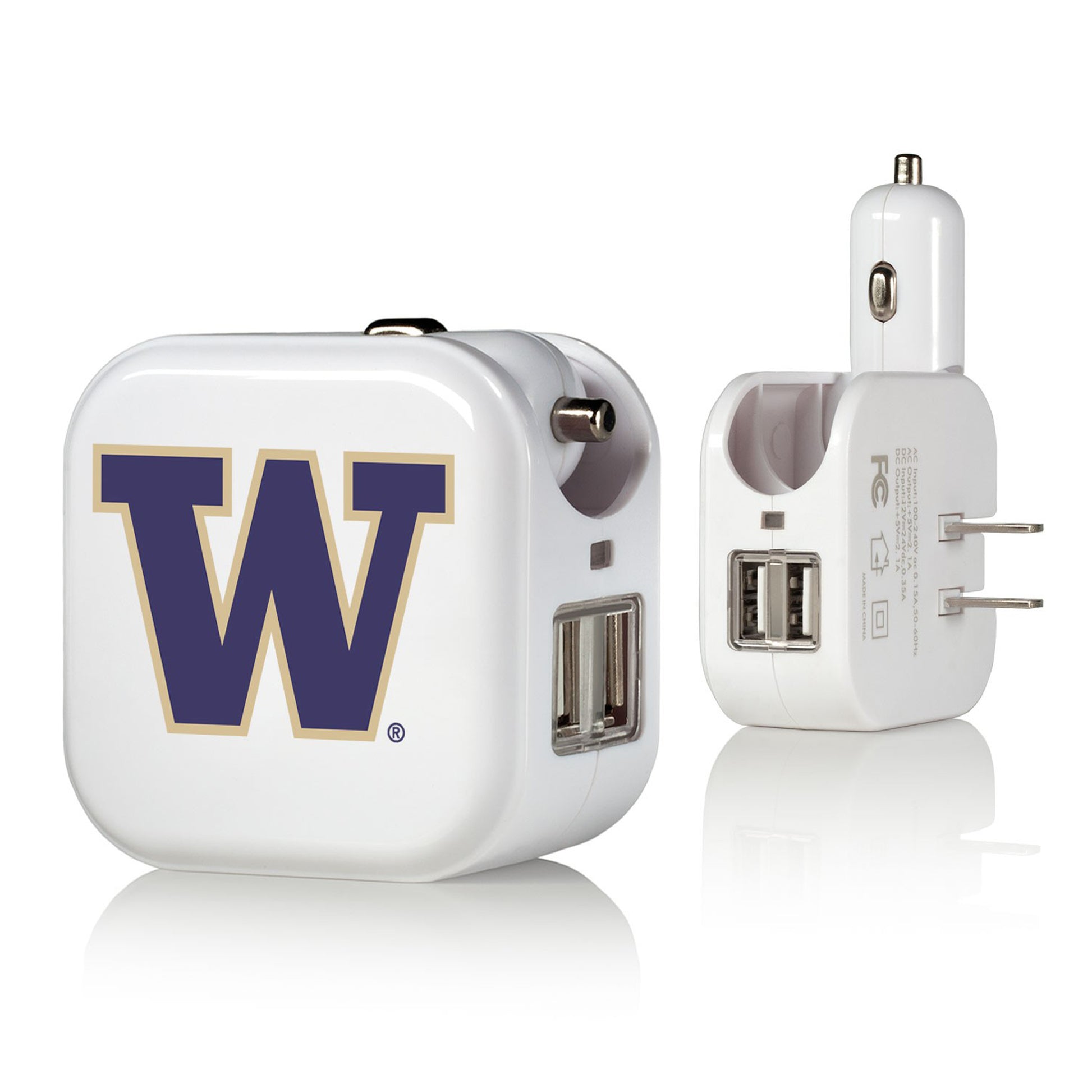 This Insignia USB Charger shows off your love for Washington Huskies. It is compatible with a standard wall outlet or a car outlet and has duel USB ports so you can charge up to two devices at a time. Complete with digitally printed Washington Huskies graphics, this accessory lets you rep your fandom while you charge.