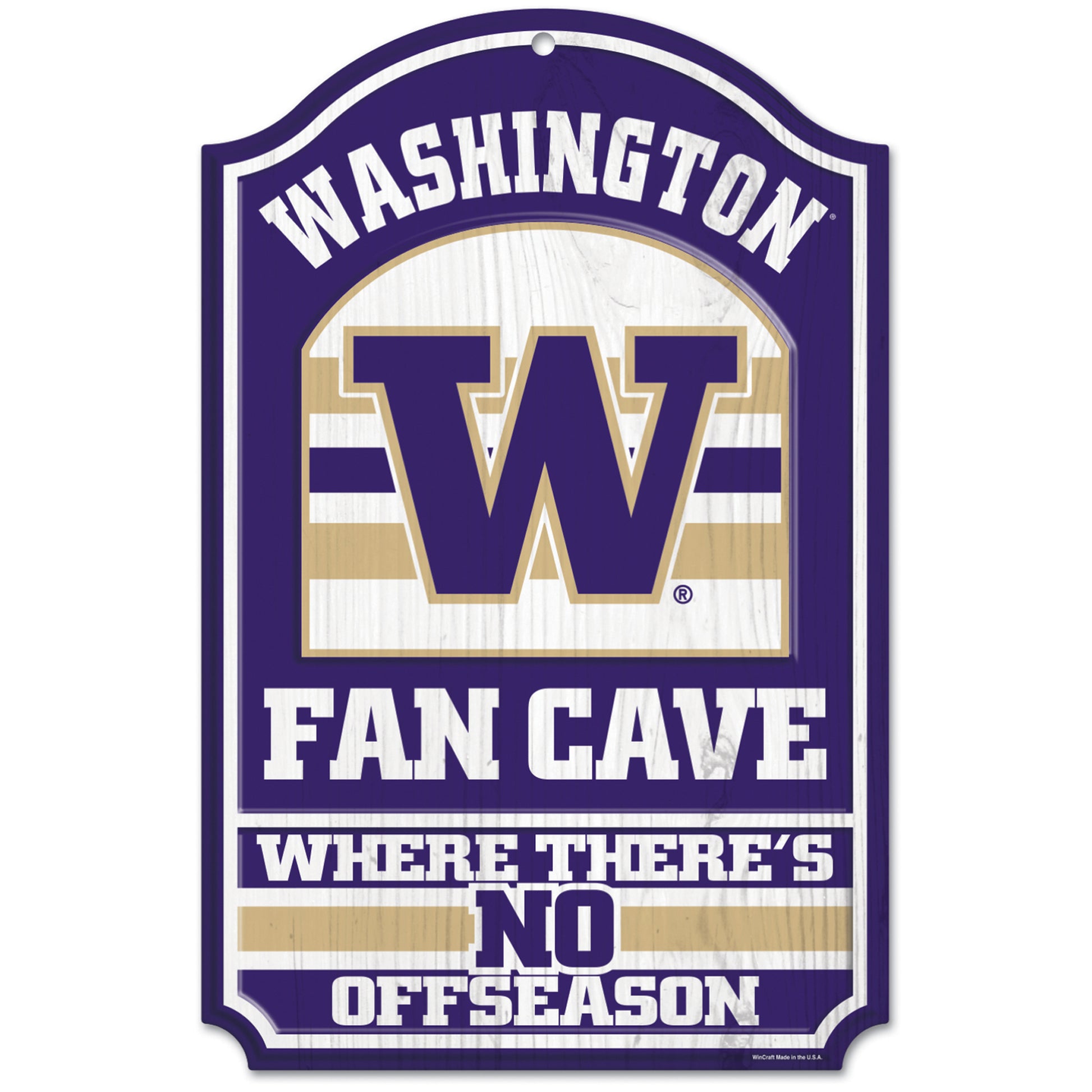 Show off your Washington Huskies pride with this 11'' x 17'' Fan Cave Wood Sign. This WinCraft sign features crisp graphics and an antique wood look. No one will doubt your dedication when they see this gear on display in your fan cave.