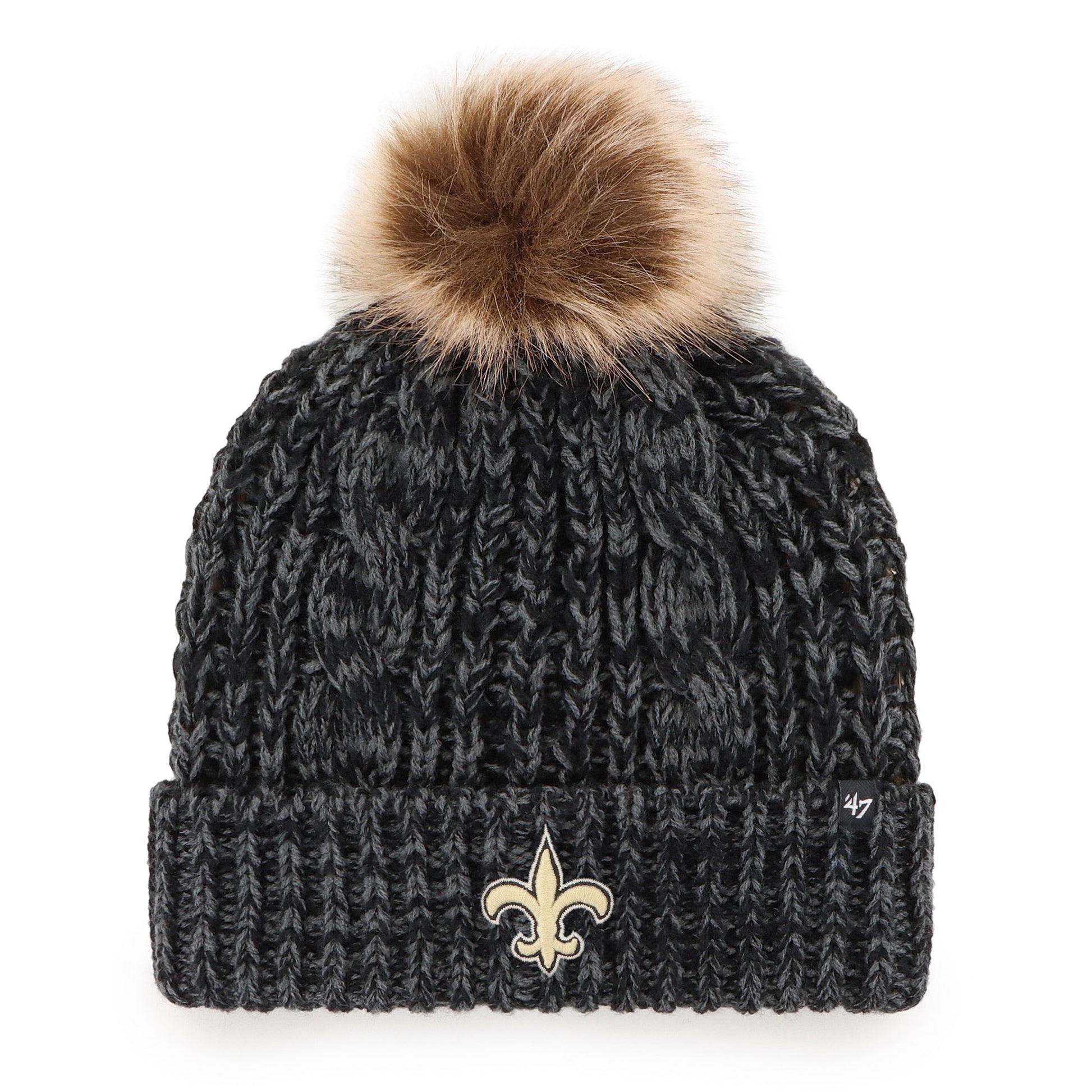 Women's '47 Black New Orleans Saints Logo Meeko Cuffed Knit Hat with Pom
