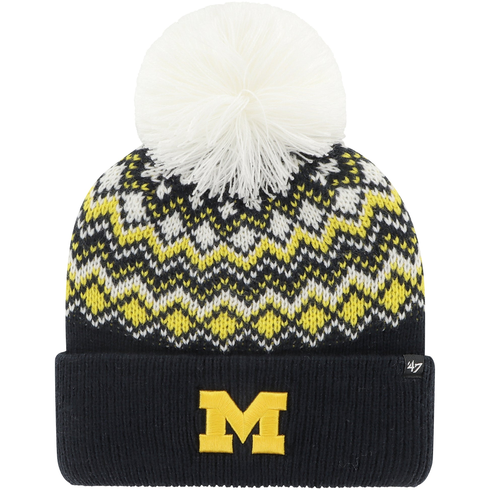 Women's '47 Navy Michigan Wolverines Elsa Cuffed Knit Hat with Pom
