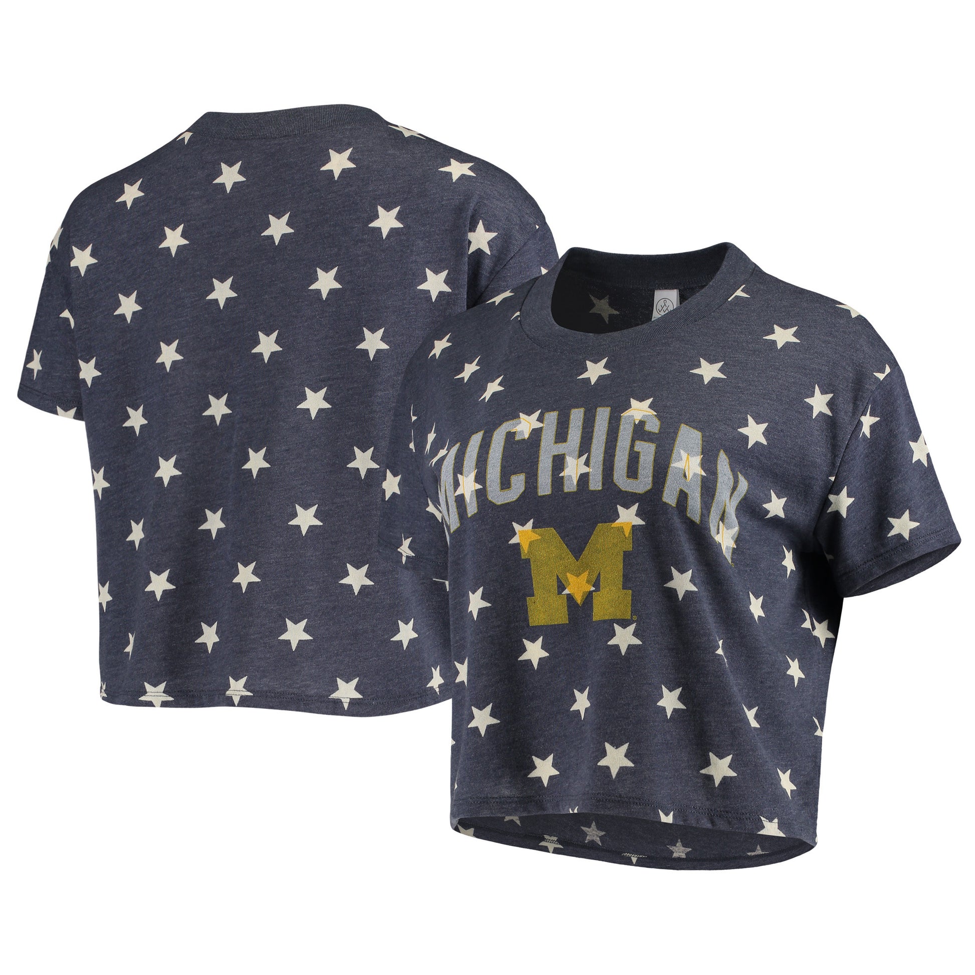 Women's Alternative Apparel Navy Michigan Wolverines Headliner Stars Cropped Tri-Blend T-Shirt