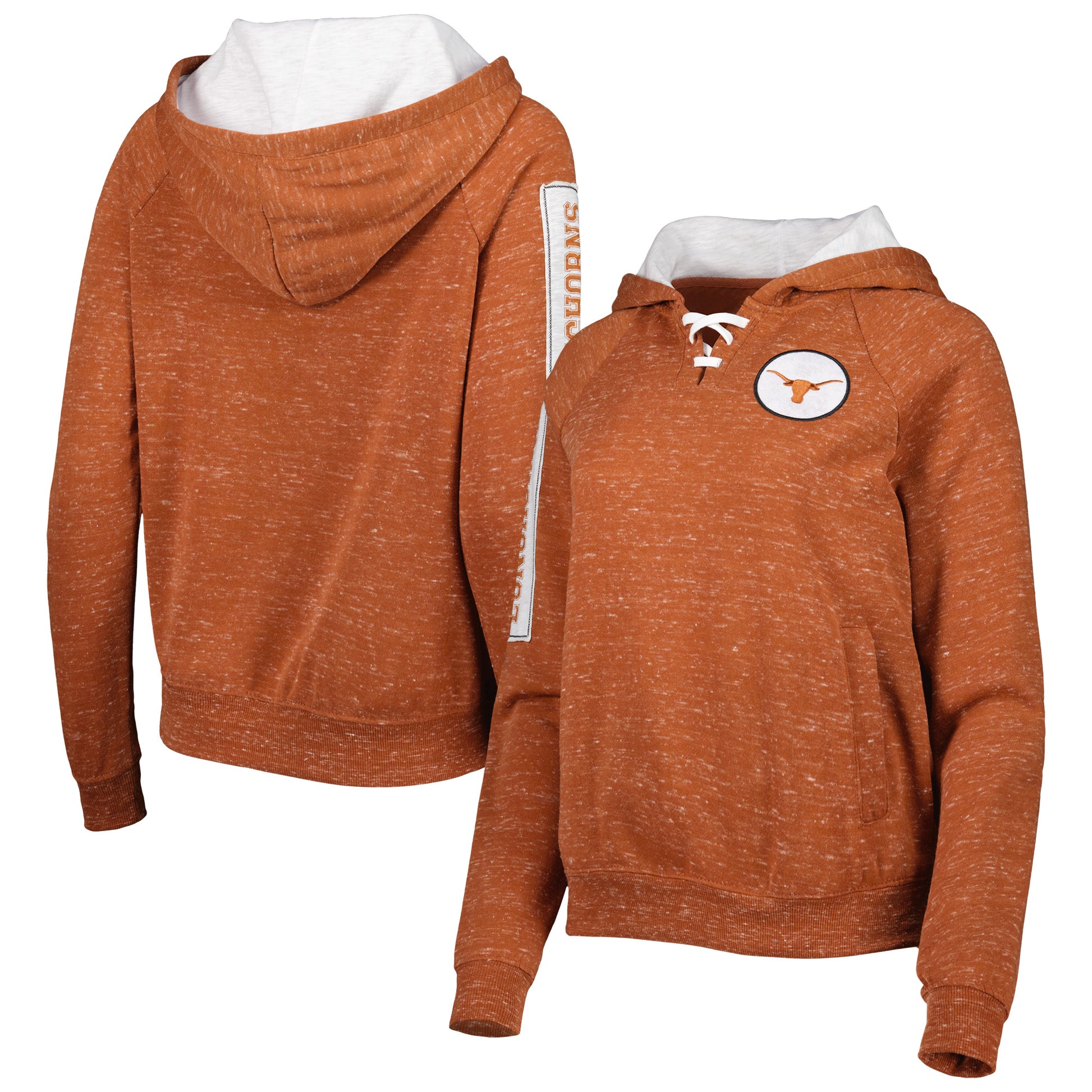 Women's Colosseum Texas Orange Texas Longhorns The Devil Speckle Lace-Placket Raglan Pullover Hoodie