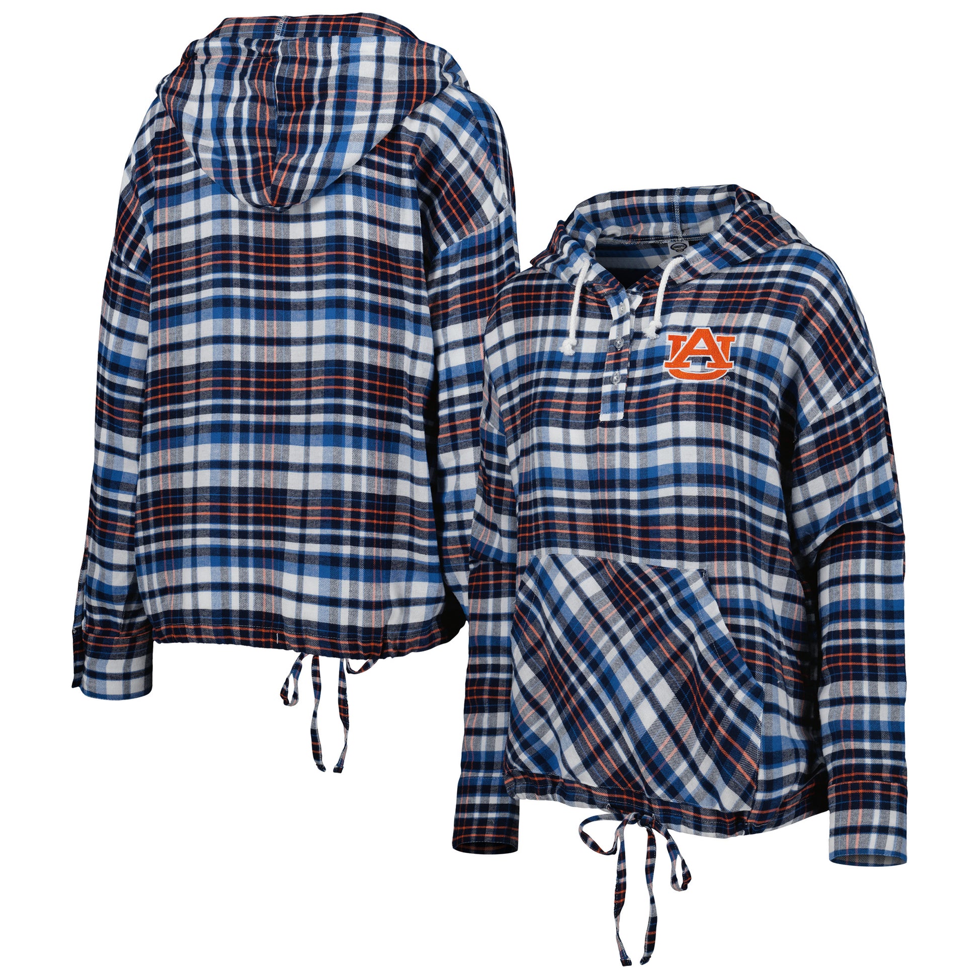 Celebrate your unwavering Auburn Tigers spirit with the Concepts Sport Navy Auburn Tigers Mainstay Lightweight Flannel Plaid Pullover Hoodie. This cozy hoodie features a woven plaid design and embroidered Auburn Tigers graphics, proudly displaying your allegiance. Its adjustable hem and one-button cuff provide a customizable fit, while the front pouch pocket keeps your essentials close at hand. Whether you're cheering from the stands or simply showing your support, this hoodie is the perfect way to represent the Auburn Tigers in style.