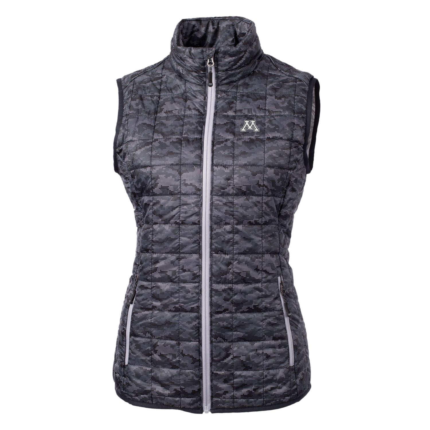 Women's Cutter & Buck Black Minnesota Golden Gophers Eco Full-Zip Puffer Vest