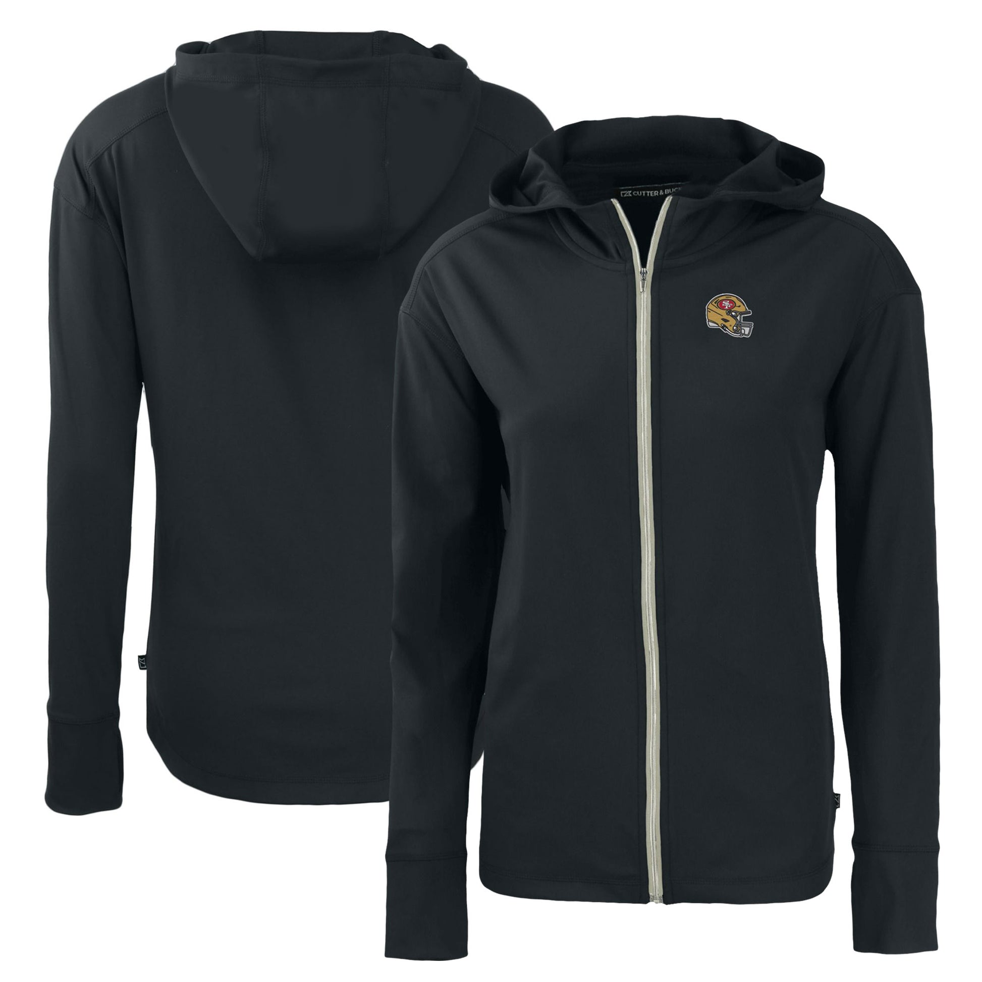 Women's Cutter & Buck Black San Francisco 49ers Helmet Daybreak Eco Recycled Full-Zip Hoodie