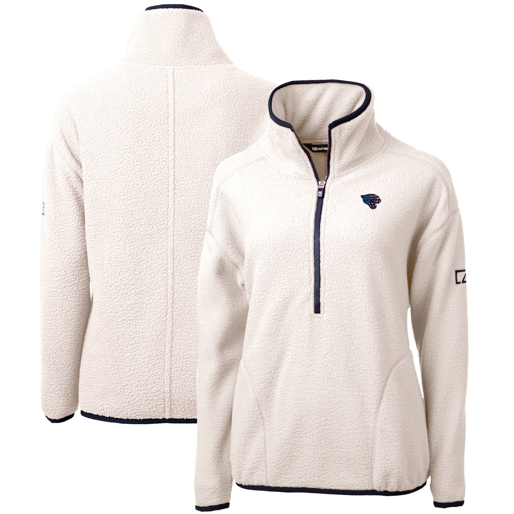Women's Cutter & Buck Cream Jacksonville Jaguars Americana Cascade Eco Sherpa Fleece Half-Zip Pullover Jacket