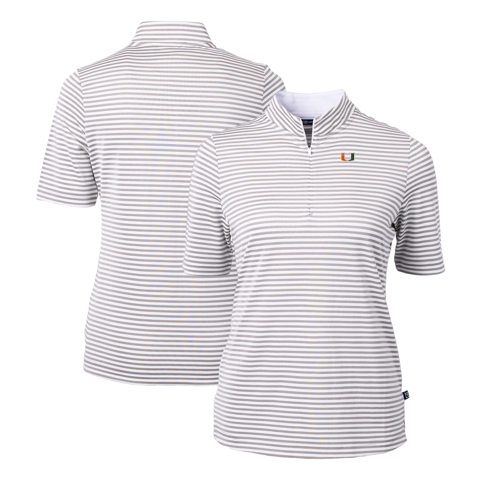 Women's Cutter & Buck Gray Miami Hurricanes DryTec Virtue Eco Pique Stripe Recycled Polo