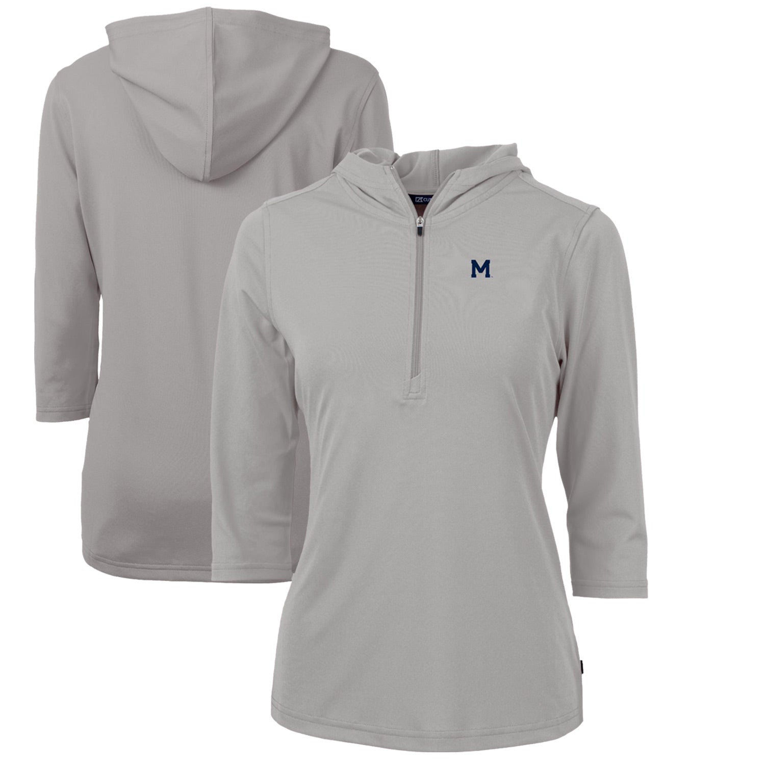 Women's Cutter & Buck Gray Michigan Wolverines Vault Virtue Eco Pique Recycled Half-Zip Pullover Hoodie