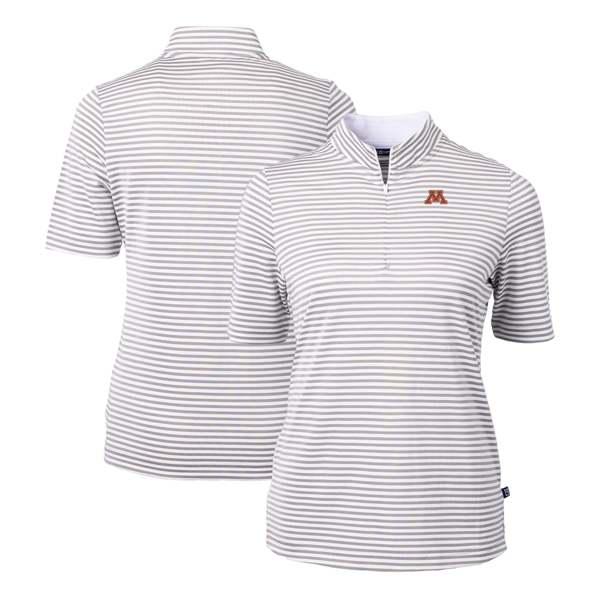 Women's Cutter & Buck Gray Minnesota Golden Gophers DryTec Virtue Eco Pique Stripe Recycled Polo