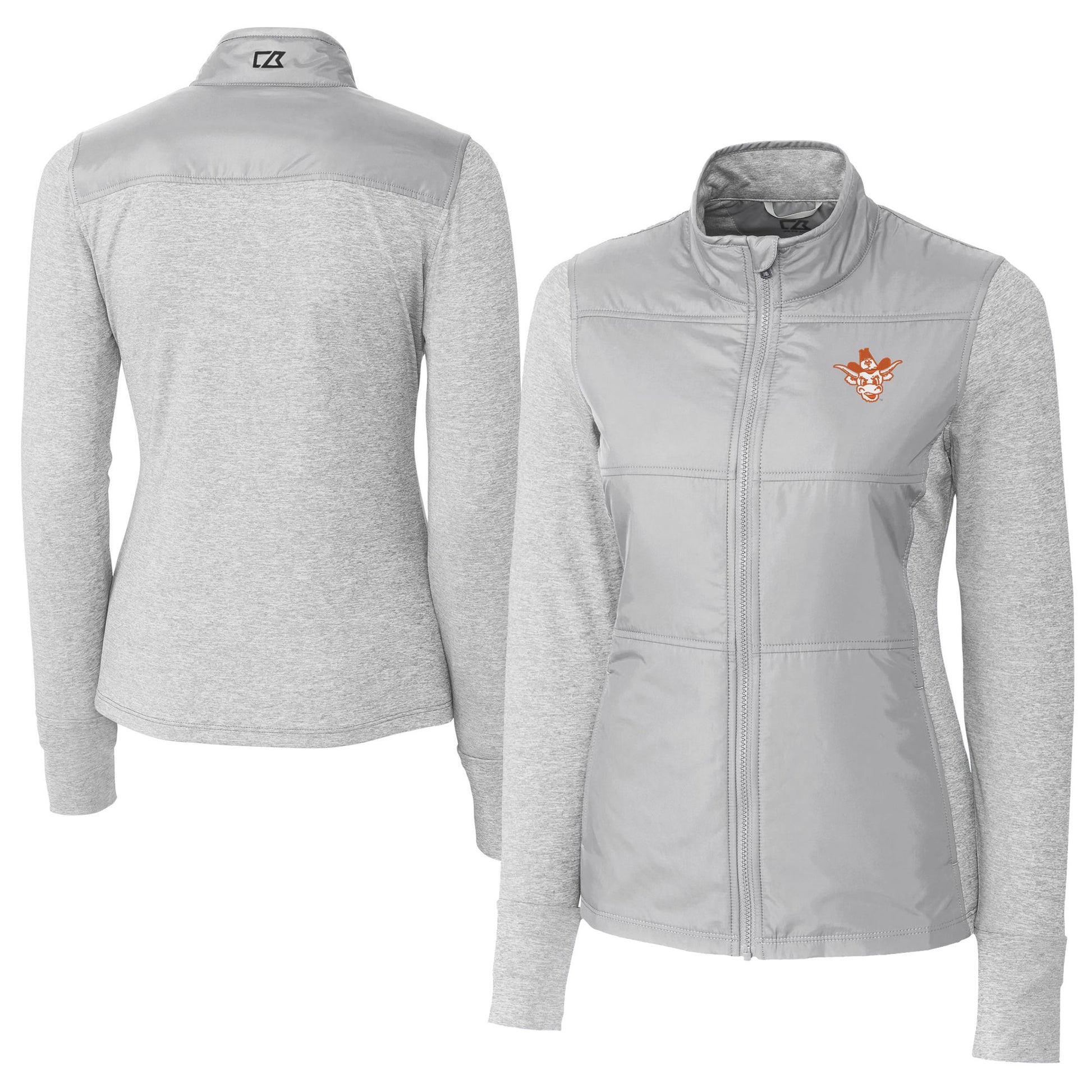 Women's Cutter & Buck Gray Texas Longhorns Vault DryTec Stealth Hybrid Quilted Full-Zip Windbreaker Jacket