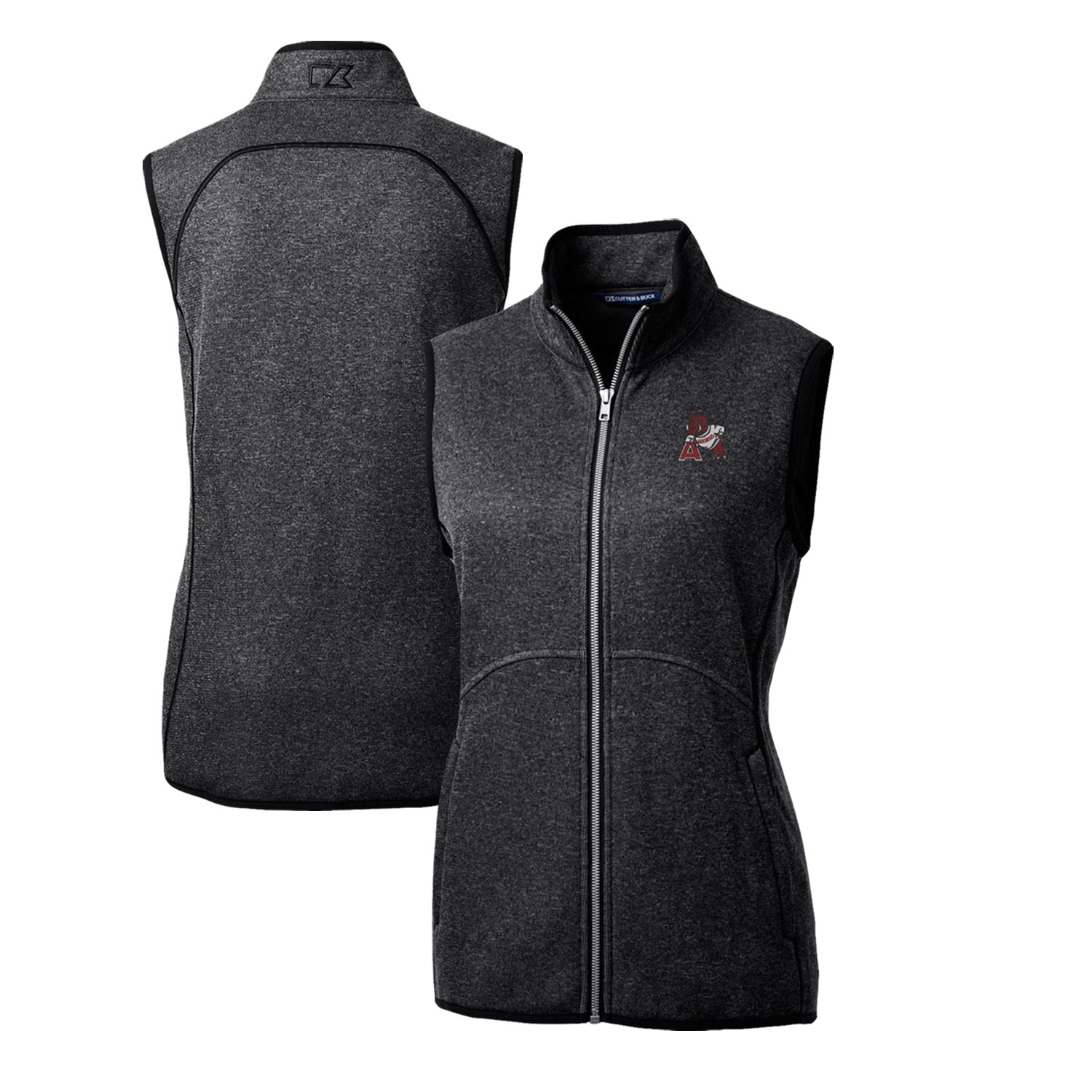 Women's Cutter & Buck Heather Charcoal Arkansas Razorbacks Mainsail Basic Sweater-Knit Full-Zip Vest