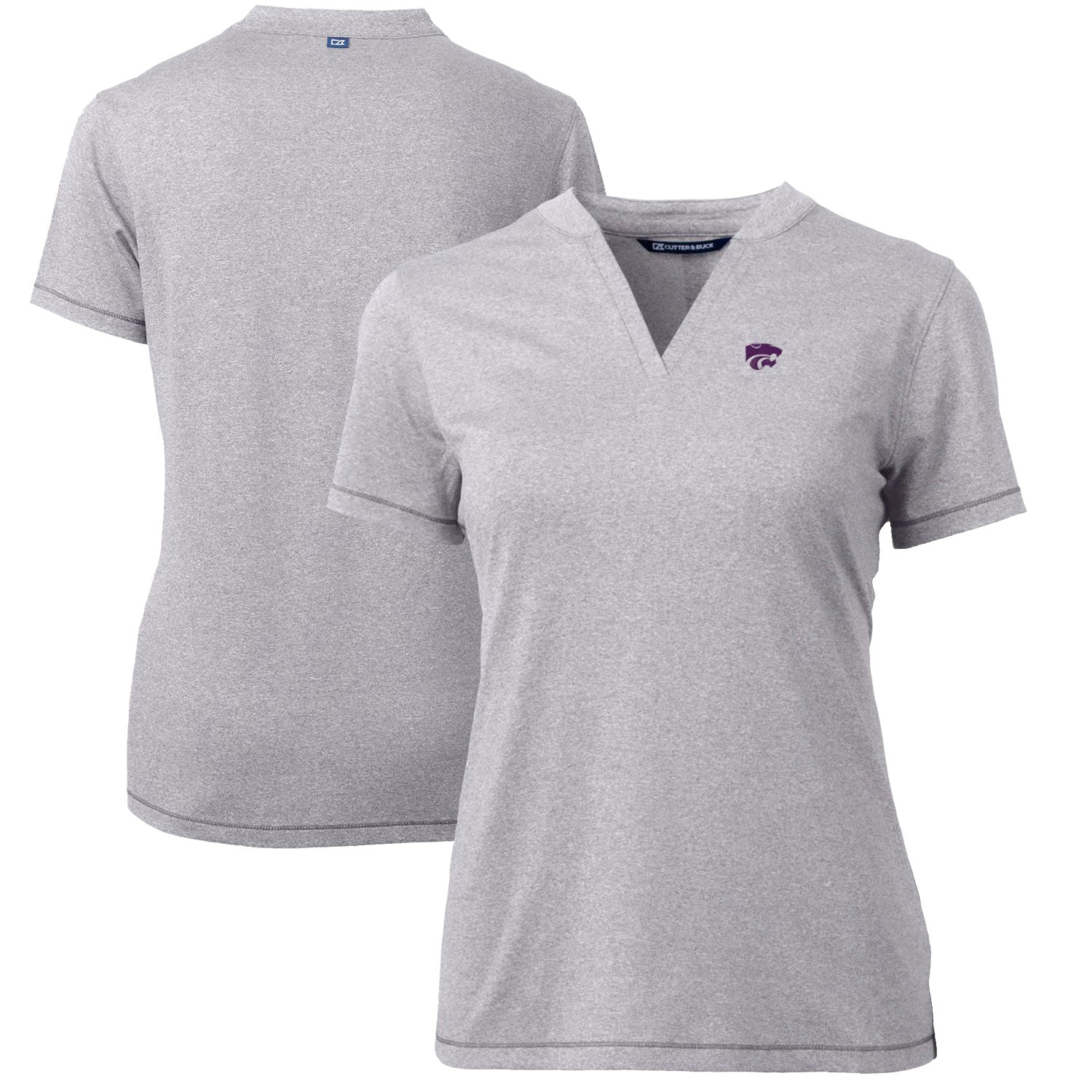 The Women's Cutter & Buck Heather Gray Kansas State Wildcats Forge Blade V-Neck Top is the perfect way to show your support for the Kansas State Wildcats. Made from a moisture-wicking polyester and spandex blend, this top will keep you comfortable all game long. The self-fabric blade collar with a v-neckline and tonal exterior stitch details add a touch of style, while the UPF 50+ UV Sun Protection will keep you safe from the sun's harmful rays. Whether you're cheering on the Wildcats from the stands or just relaxing at home, this top is a must-have for any Kansas State Wildcats fan.
