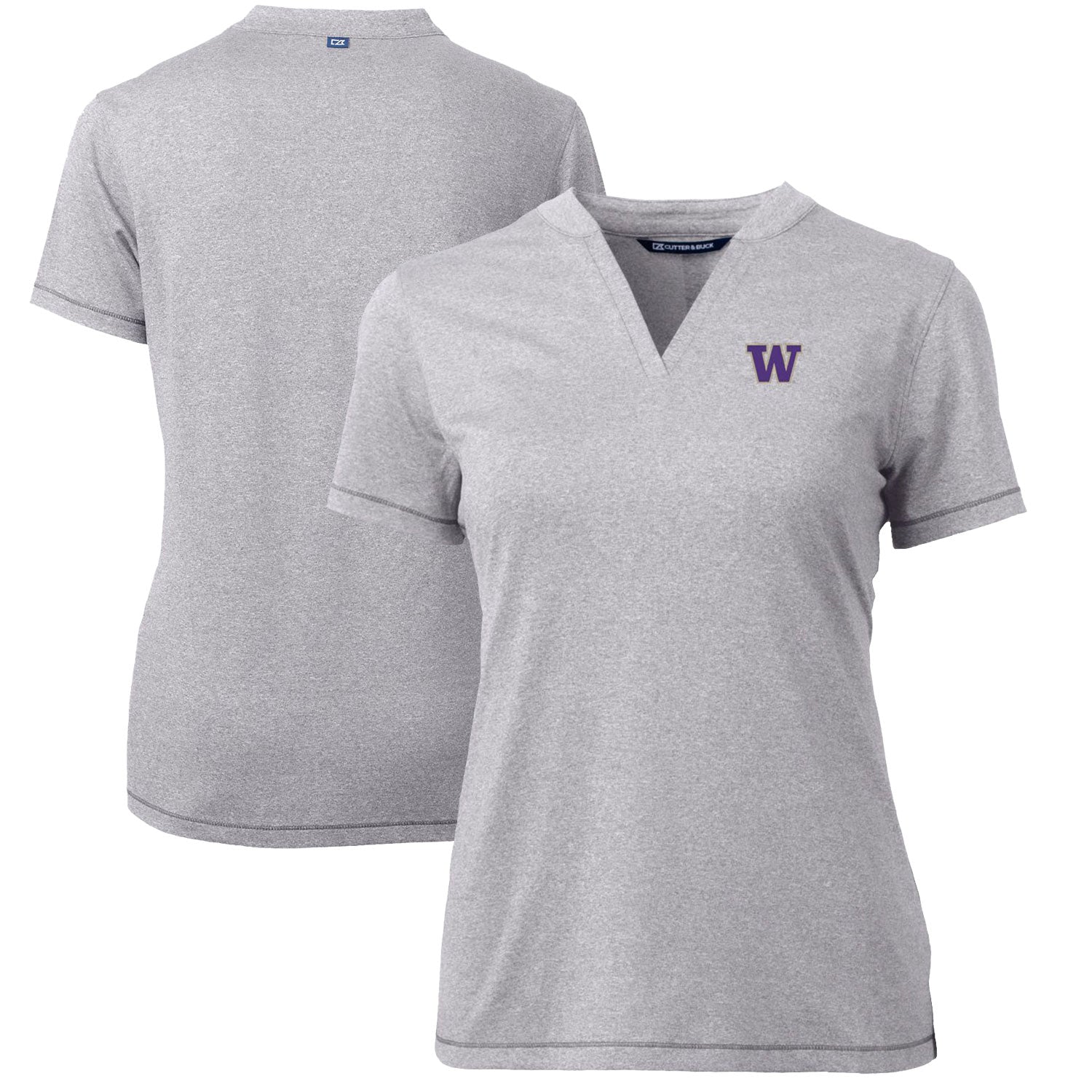 The Women's Cutter & Buck Heather Gray Washington Huskies Forge Blade V-Neck Top is the perfect way to show your support for the Washington Huskies. Made from a moisture-wicking polyester and spandex blend, this top will keep you comfortable and dry all game long. The self-fabric blade collar with a v-neckline adds a touch of style, while the tonal exterior stitch details and UPF 50+ UV Sun Protection ensure you'll look and feel your best. Whether you're cheering on the Huskies from the stands or just showing your support around town, this top is a must-have for any Washington Huskies fan.