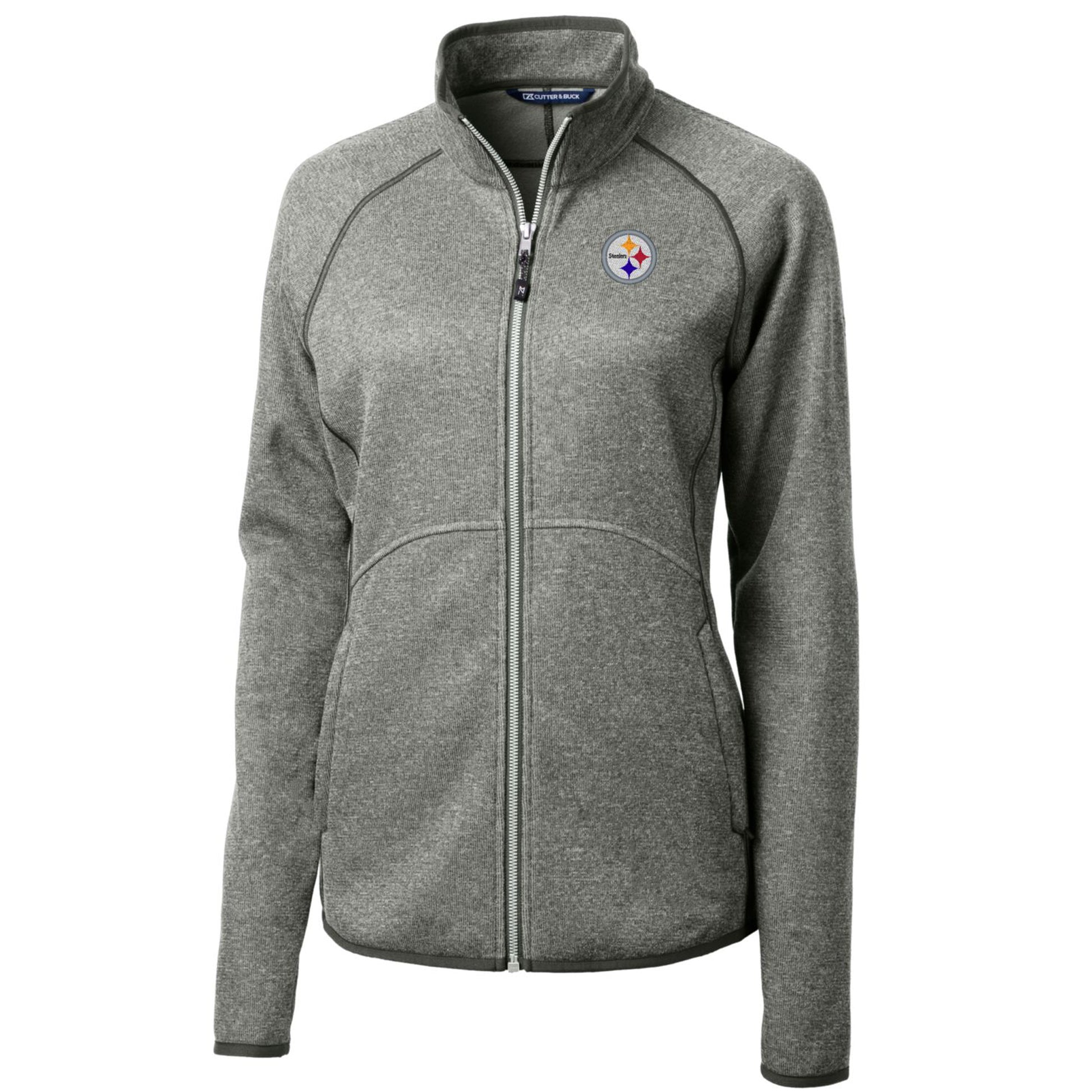 Women's Cutter & Buck Heathered Gray Pittsburgh Steelers Mainsail Sweater-Knit Full-Zip Jacket