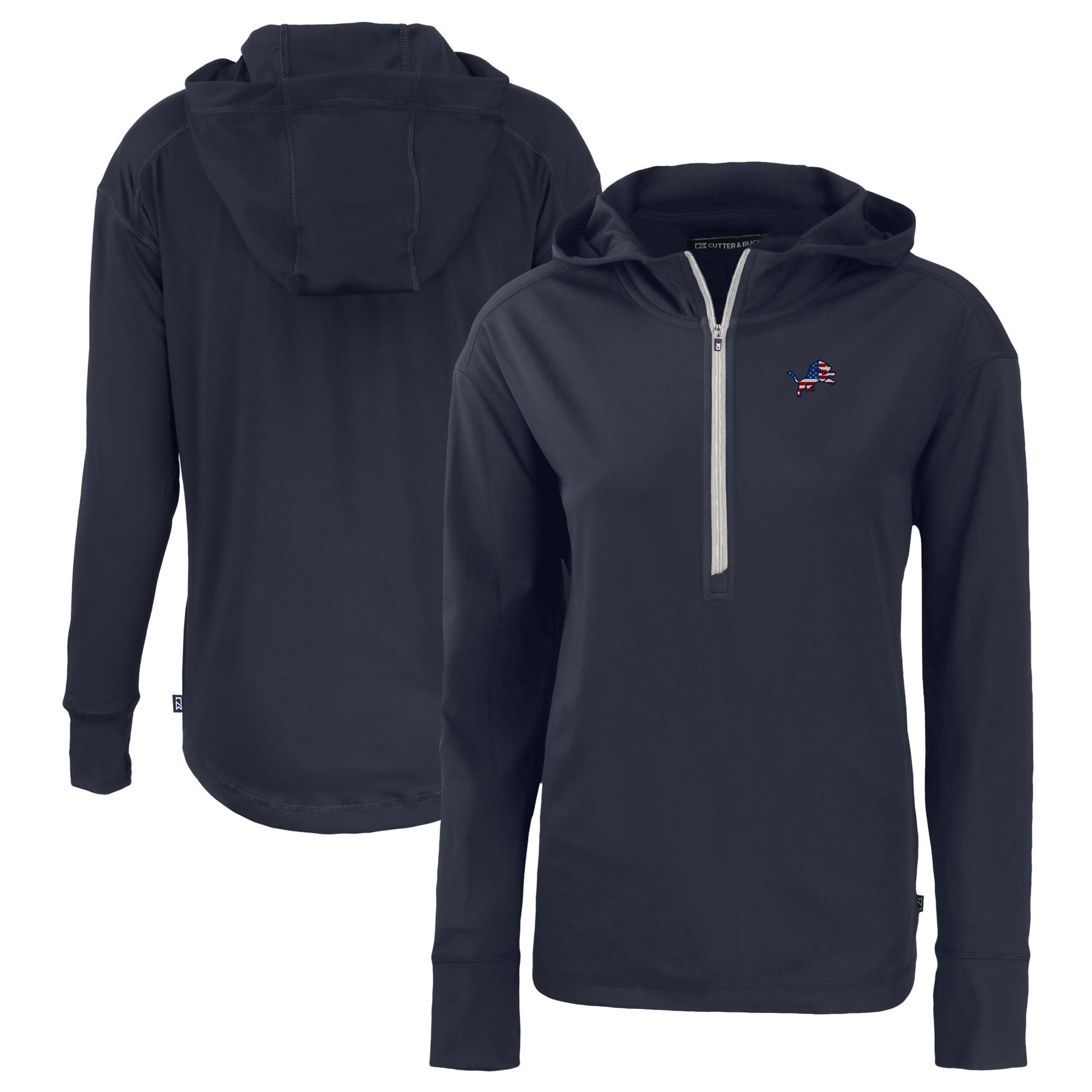 Women's Cutter & Buck Navy Detroit Lions Daybreak Eco Recycled Half-Zip Hoodie
