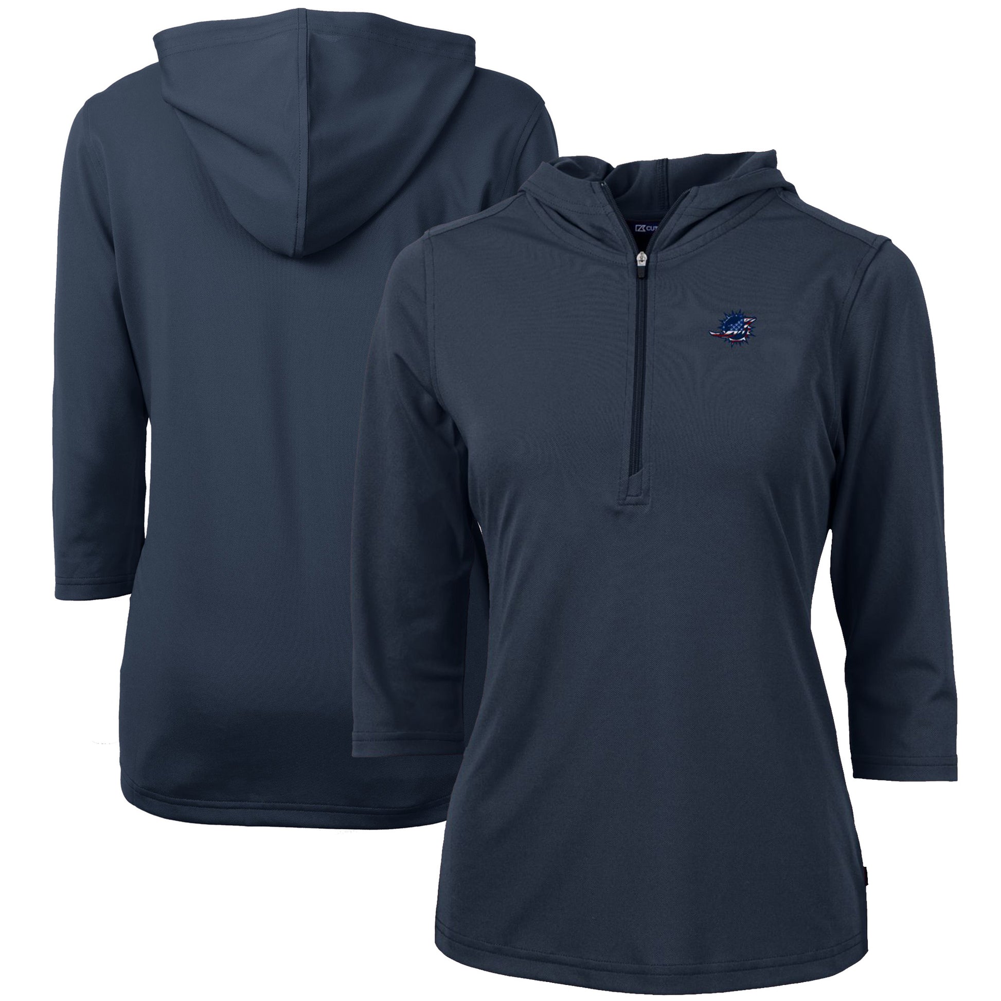 Women's Cutter & Buck Navy Miami Dolphins Virtue Eco Pique 3/4 Sleeve Half-Zip Pullover Hoodie
