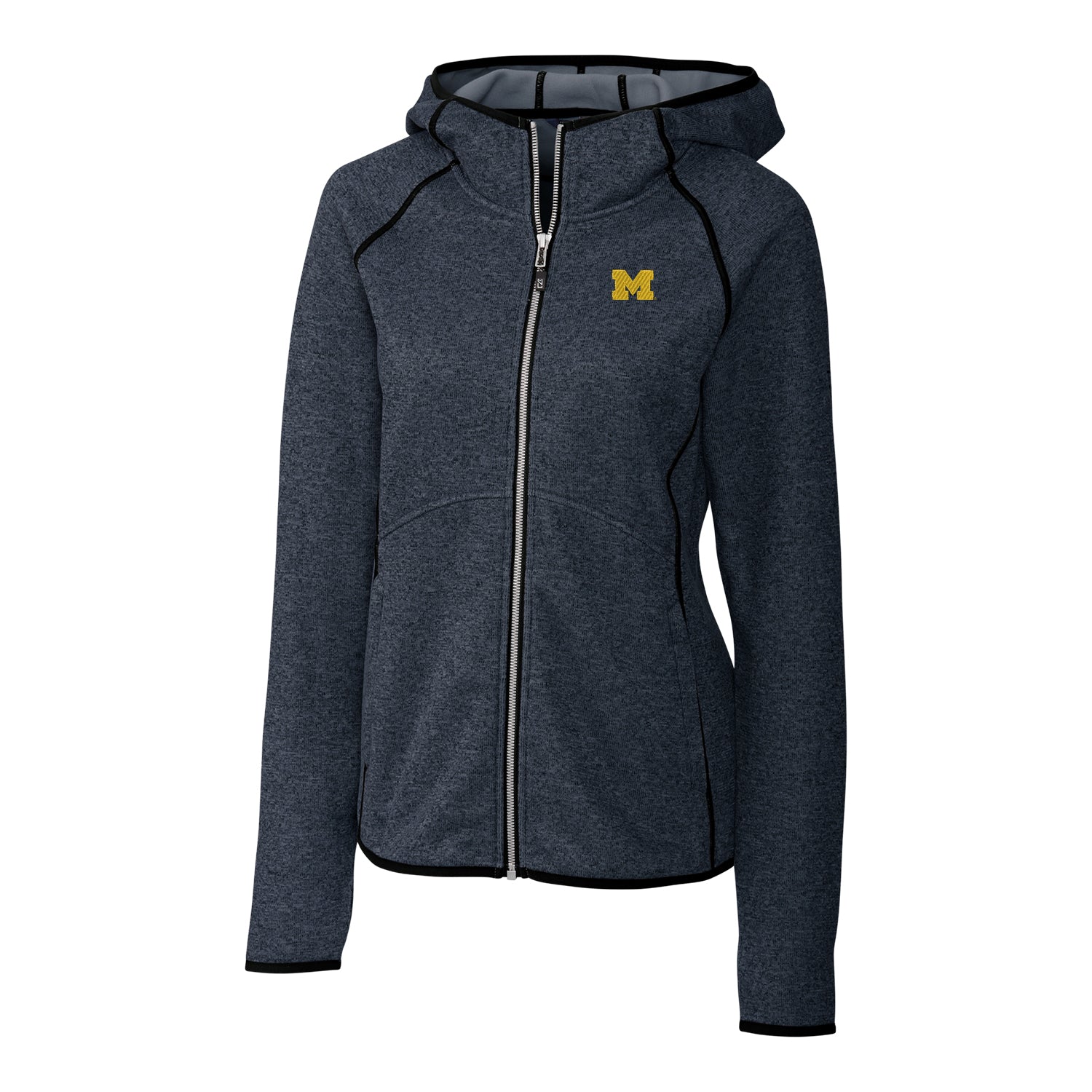 Women's Cutter & Buck Navy Michigan Wolverines Mainsail Hooded Full-Zip Jacket
