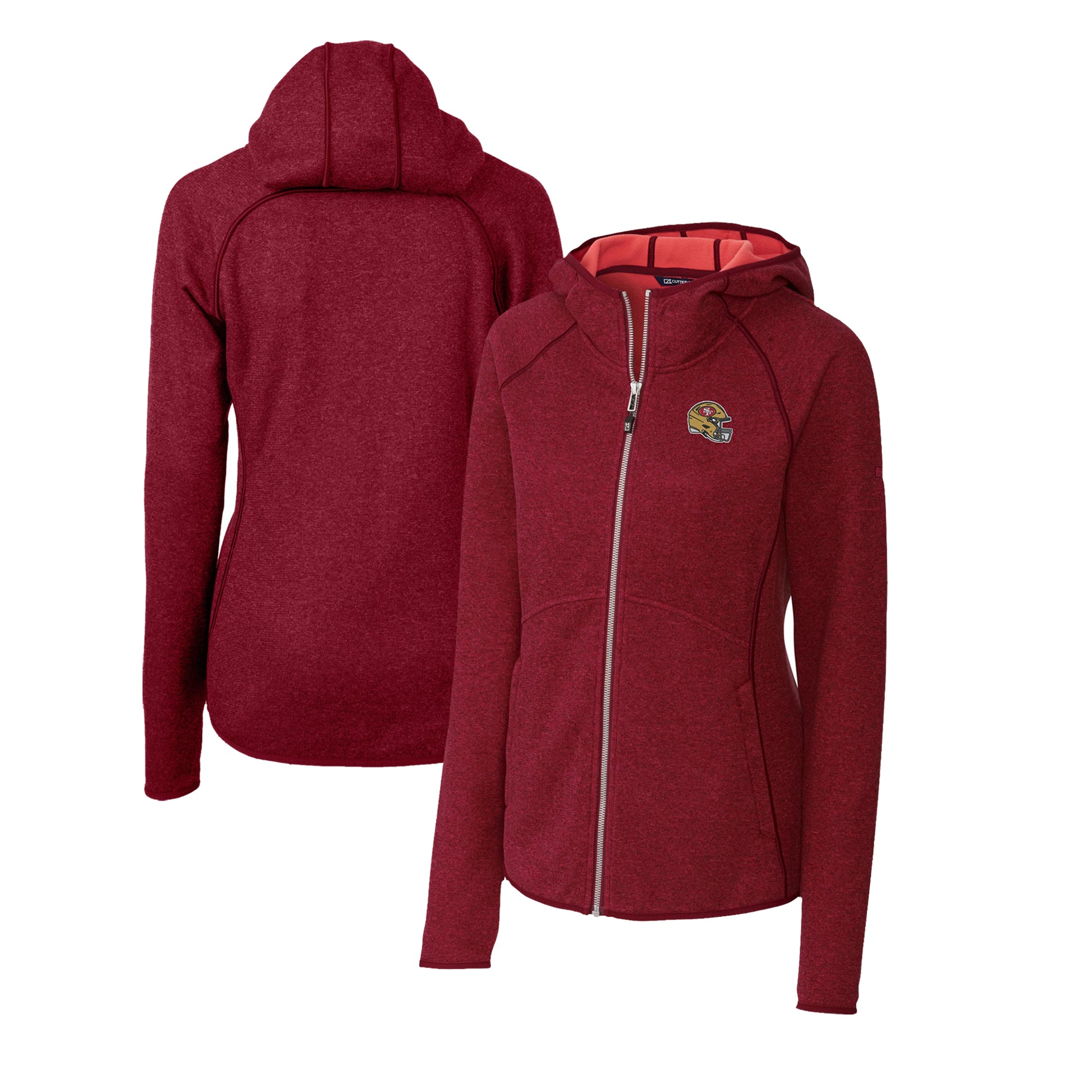 Women's Cutter & Buck Scarlet San Francisco 49ers Helmet Logo Mainsail Sweater-Knit Full-Zip Hoodie
