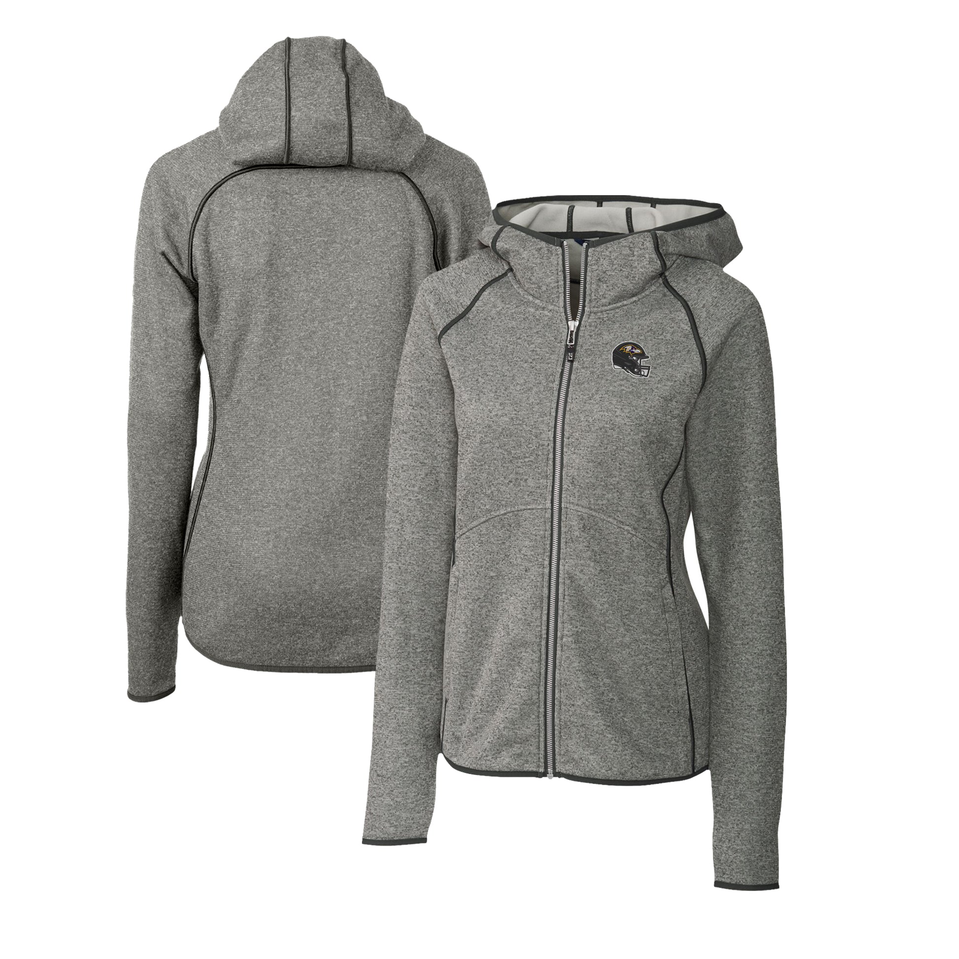 Women's Cutter & Buck Steel Baltimore Ravens Helmet Logo Mainsail Sweater-Knit Full-Zip Hoodie