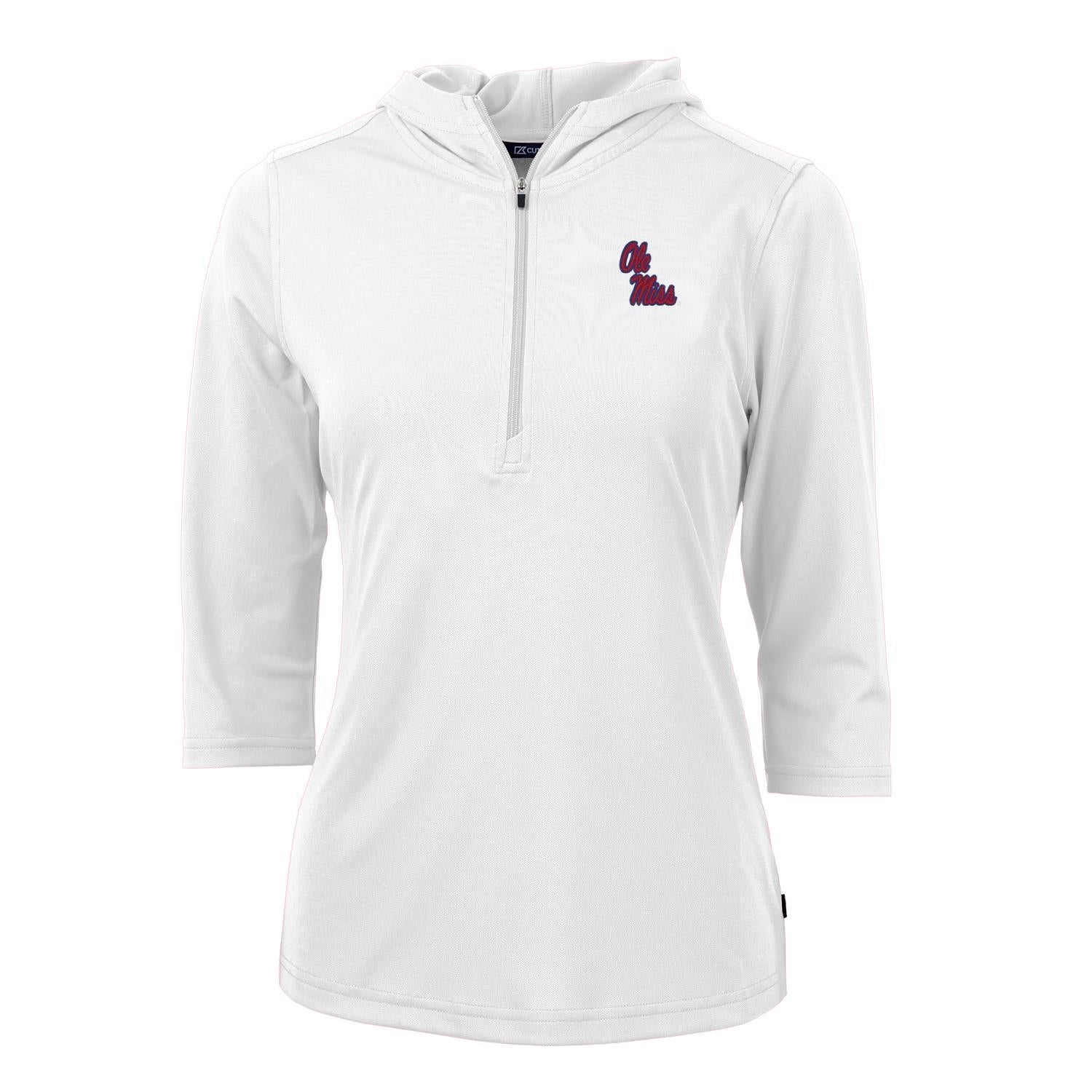 Women's Cutter & Buck White Ole Miss Rebels Virtue Eco Pique 3/4 Sleeve Half-Zip Pullover Hoodie