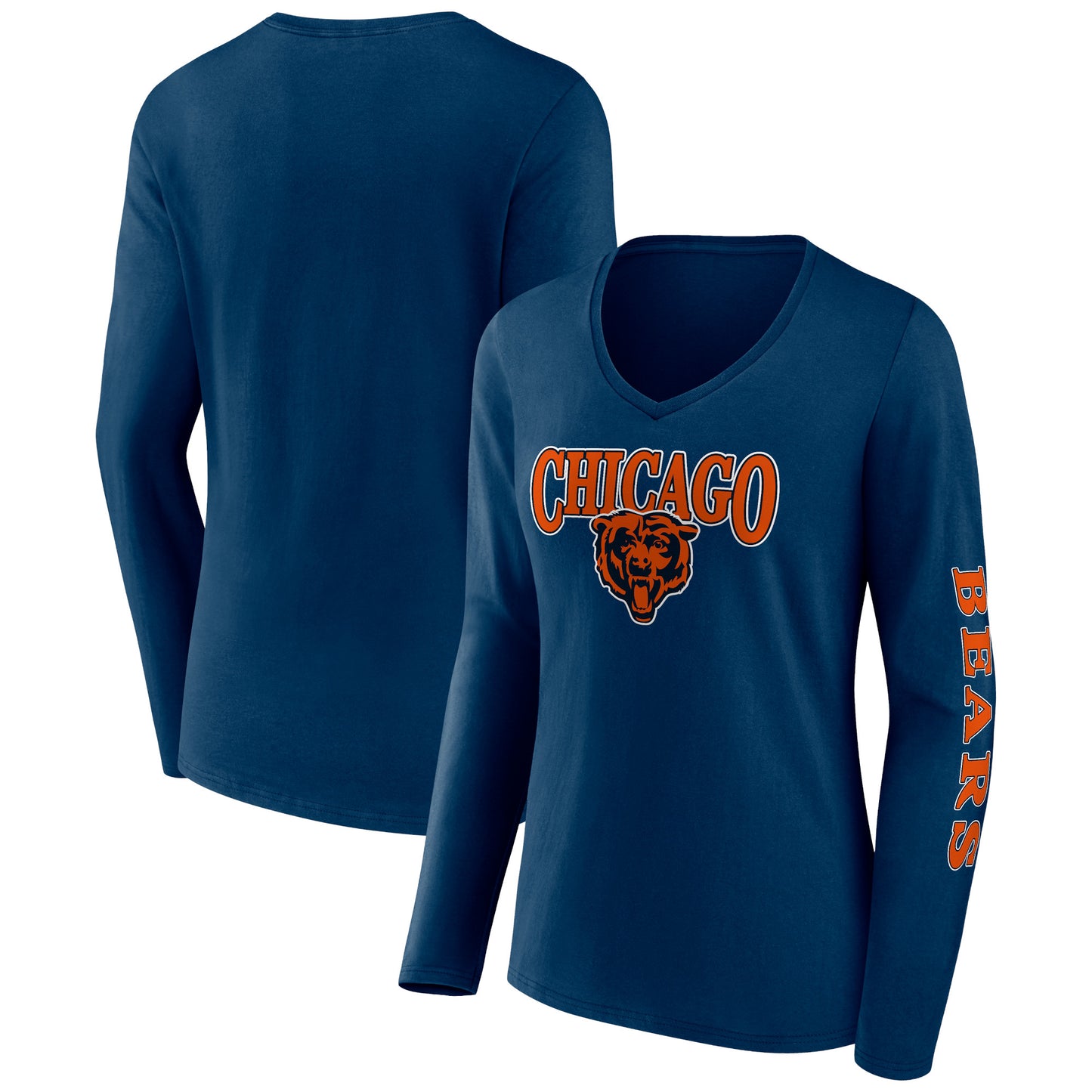 Women's Fanatics Navy Chicago Bears Wordmark Long Sleeve V-Neck T-Shirt