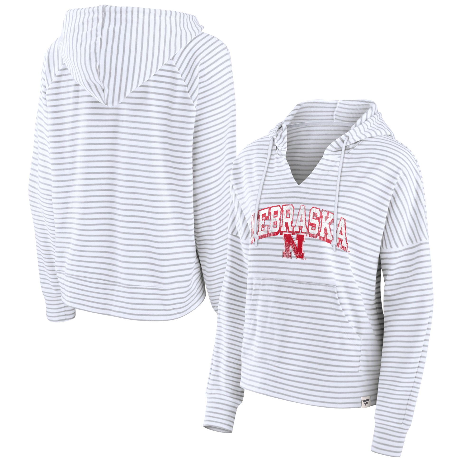 Women's Fanatics White Nebraska Huskers Striped Notch Neck Pullover Hoodie