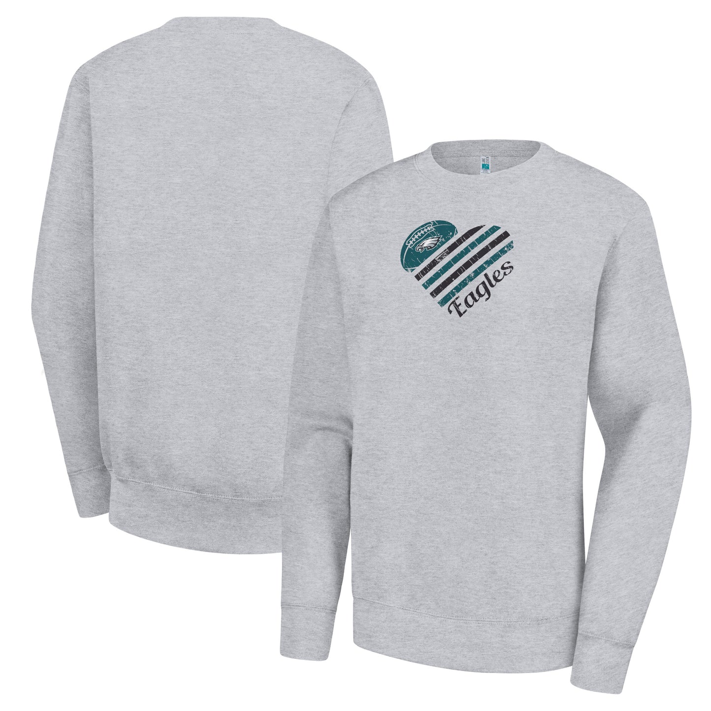Women's G-III 4Her by Carl Banks Heather Gray Philadelphia Eagles Heart Graphic Fleece Pullover Sweatshirt