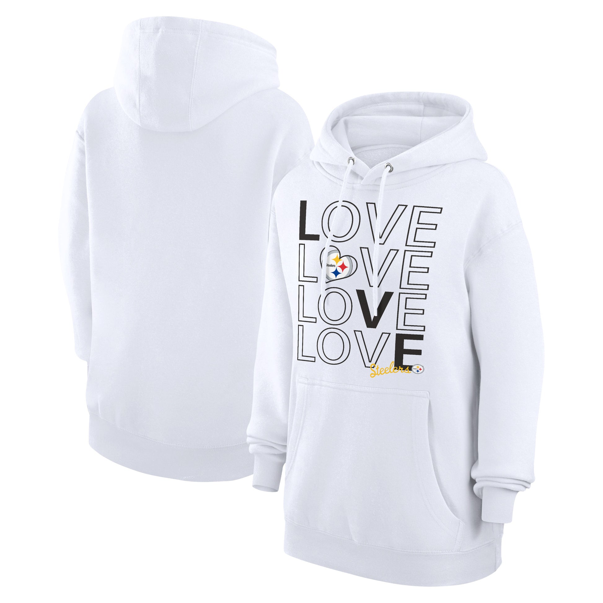 Women's G-III 4Her by Carl Banks White Pittsburgh Steelers Love Graphic Pullover Hoodie