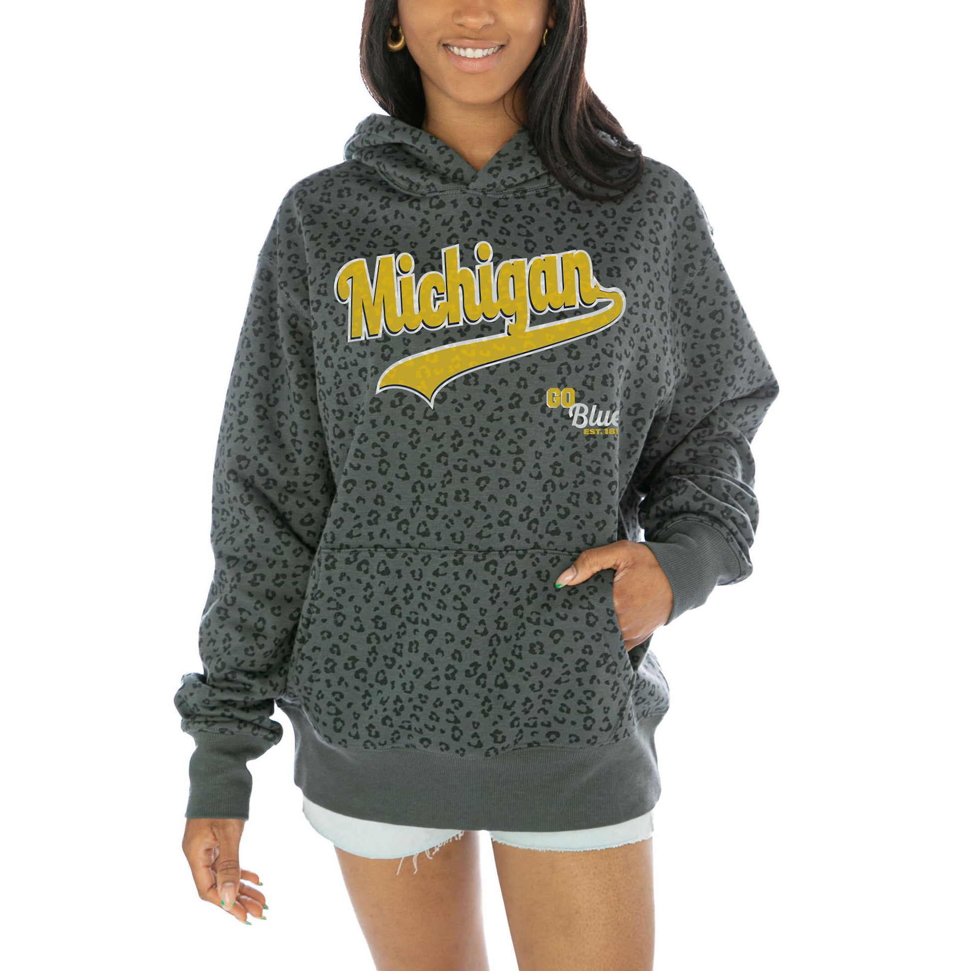 Women's Gameday Couture Black Michigan Wolverines Fierce Force Leopard Print Pullover Hoodie