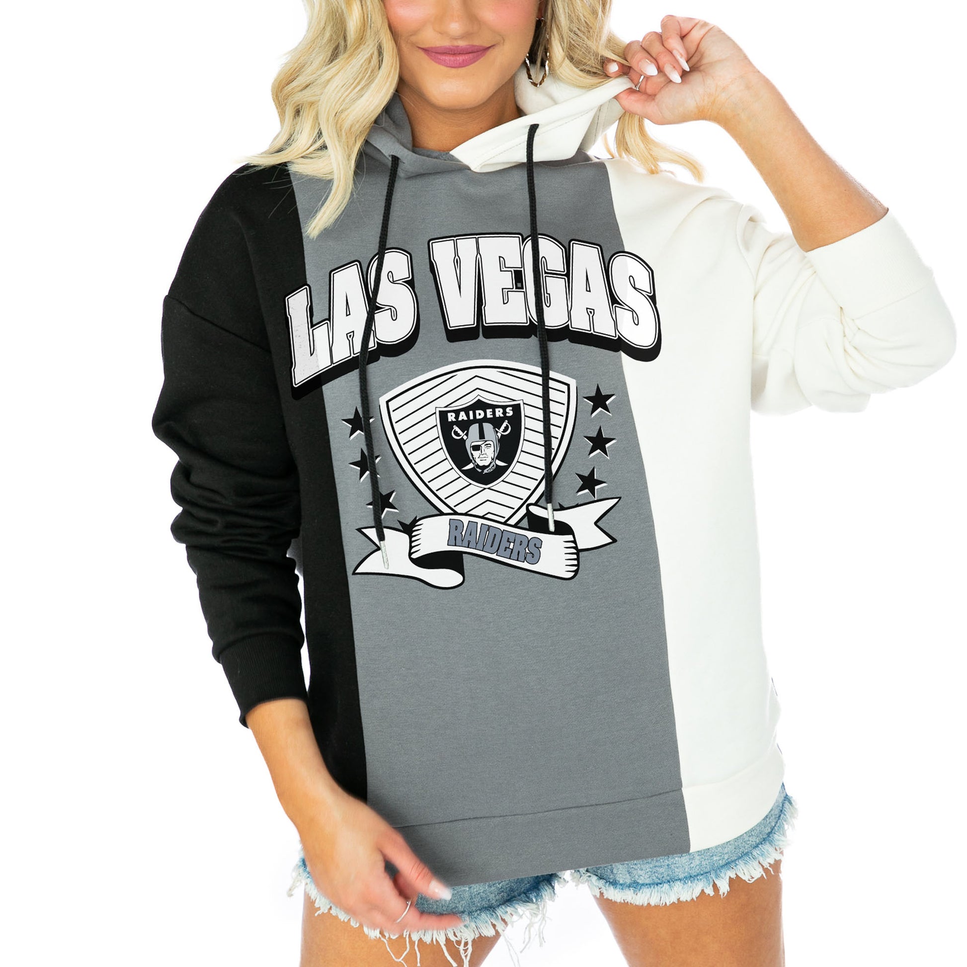 Women's Gameday Couture Black/White Las Vegas Raiders Take The Field Tri-Color Block Fleece Pullover Hoodie