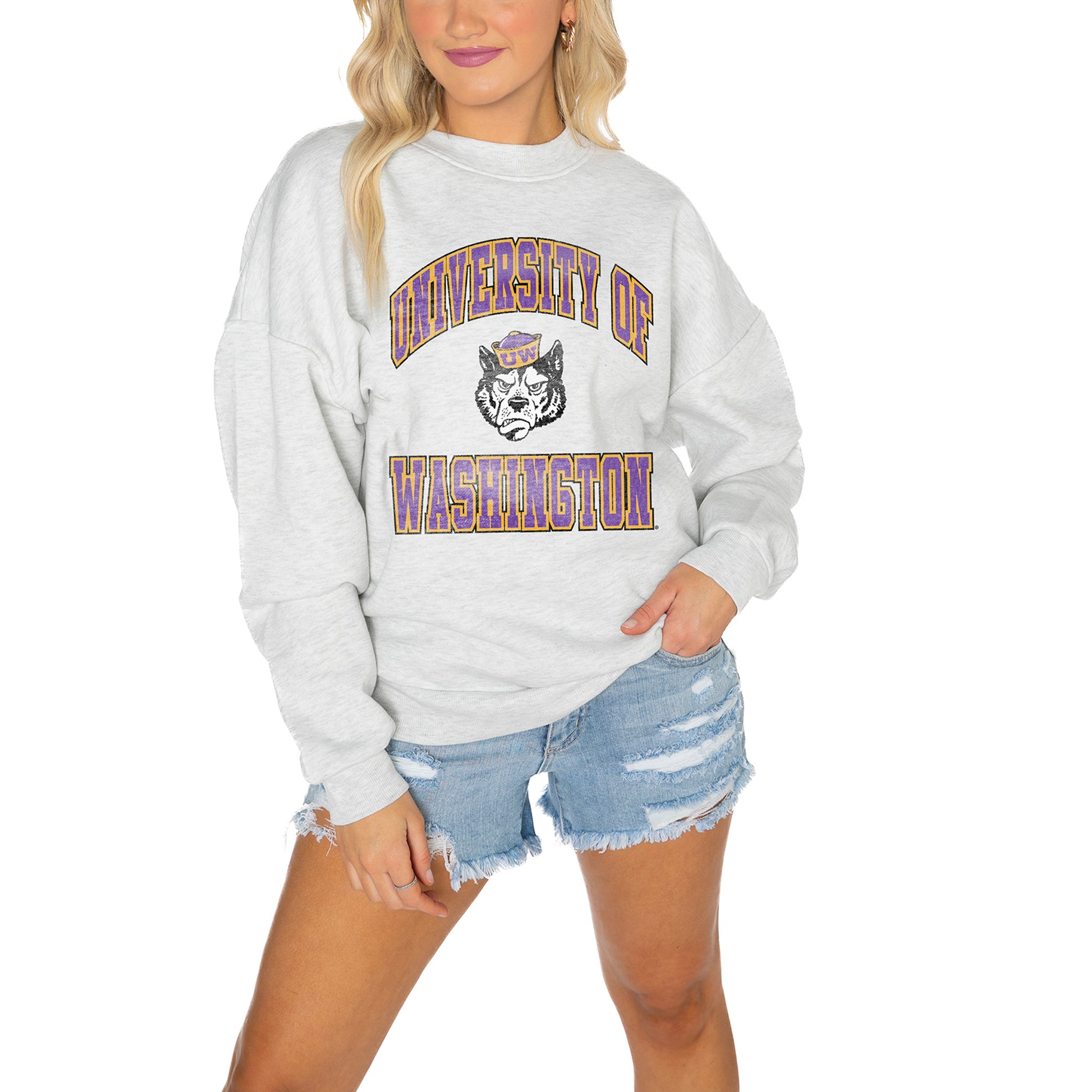 Women's Gameday Couture Gray Washington Huskies Drop Shoulder Fleece Drop Pullover Sweatshirt