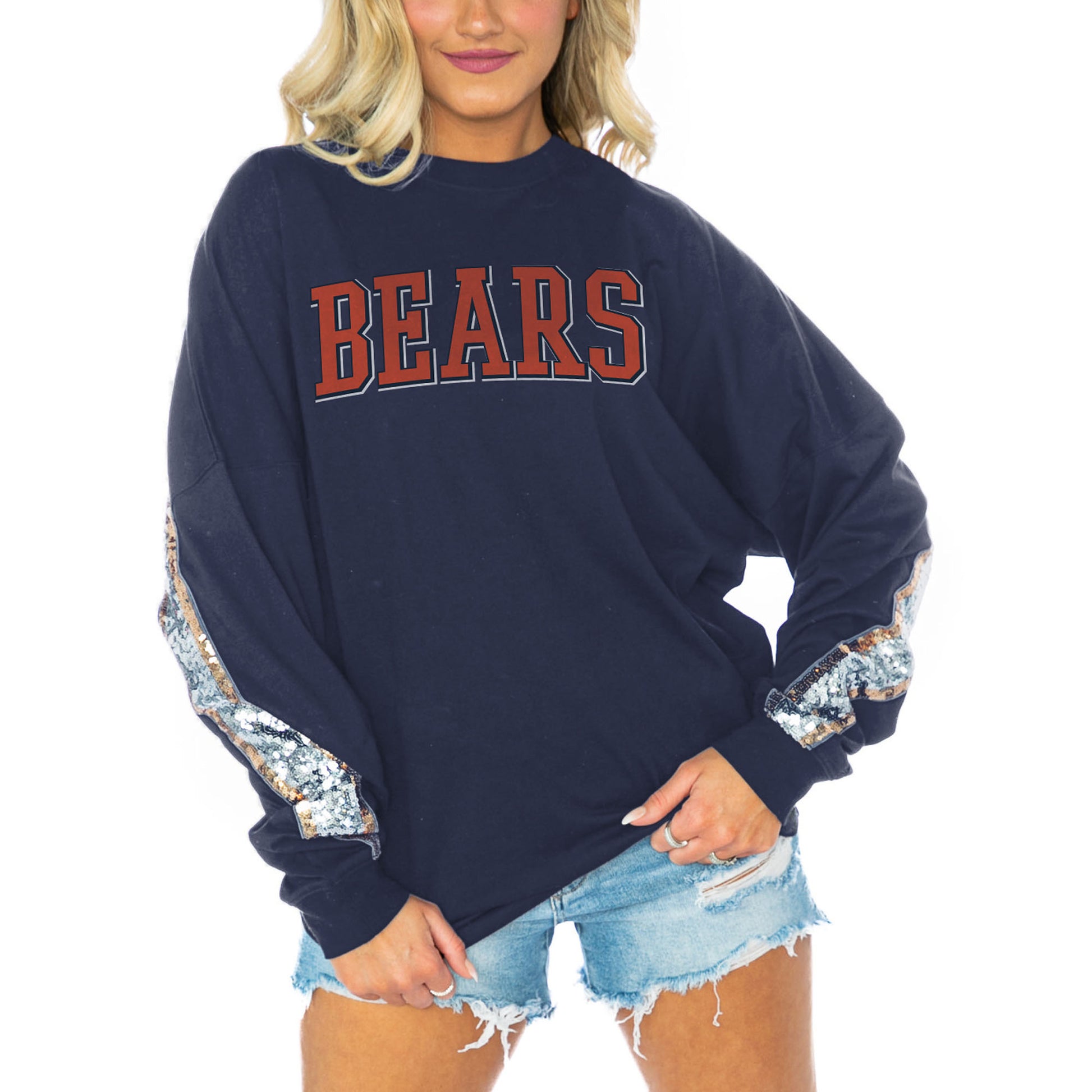Women's Gameday Couture Navy Chicago Bears Glitz Sequin Long Sleeve T-Shirt