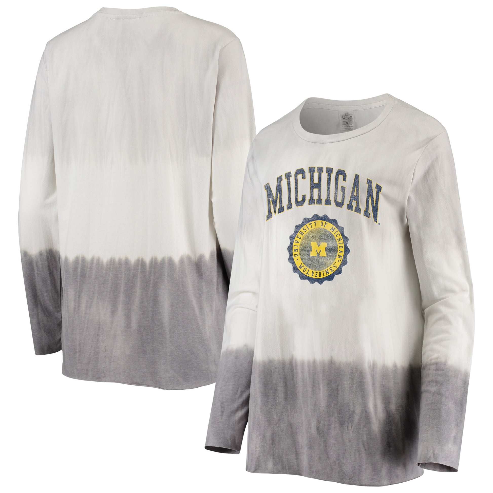 Women's Gameday Couture White/Gray Michigan Wolverines High Line Tiered Dip-Dye Long Sleeve Tri-Blend T-Shirt