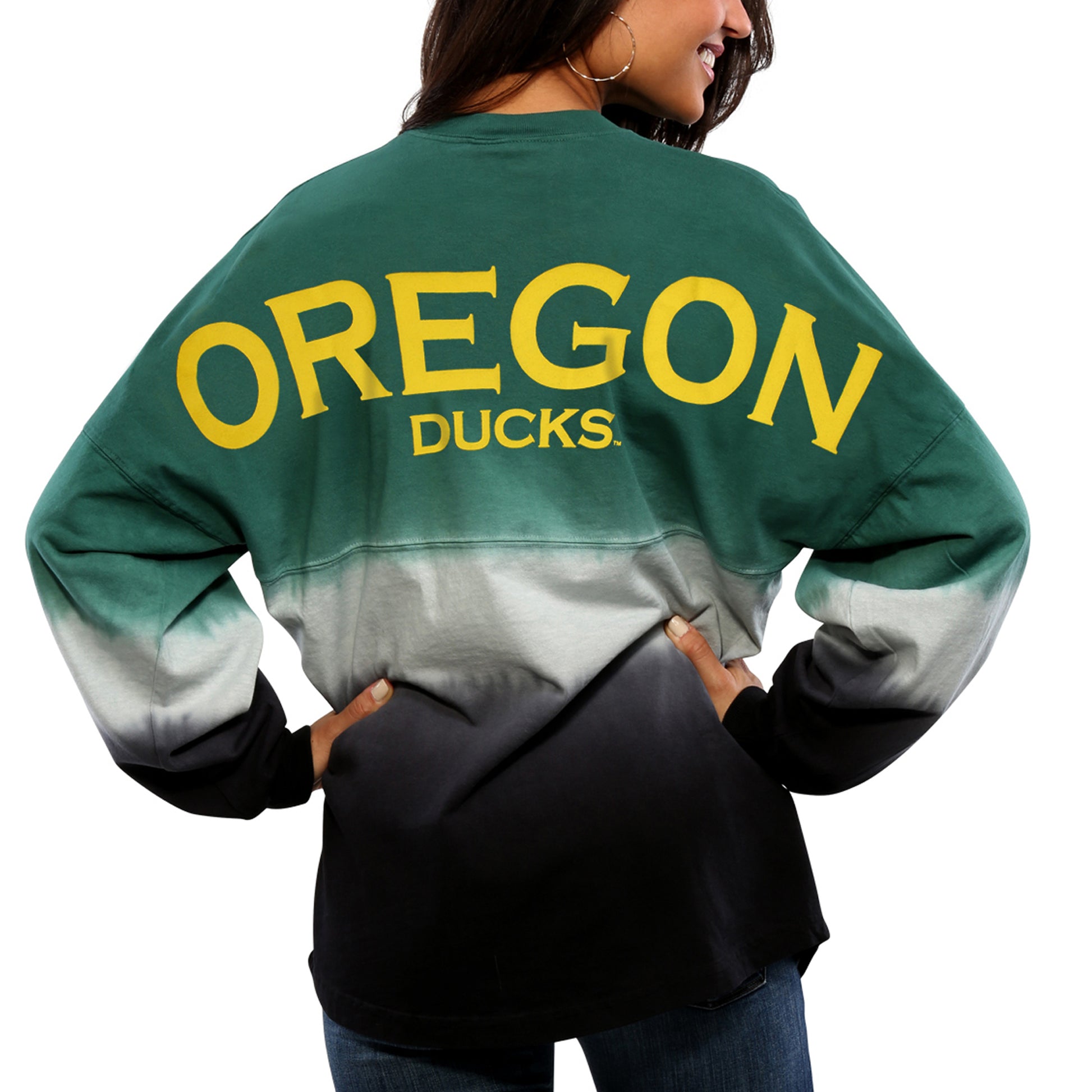 Women's Green Oregon Ducks Ombre Long Sleeve Dip-Dyed Spirit Jersey