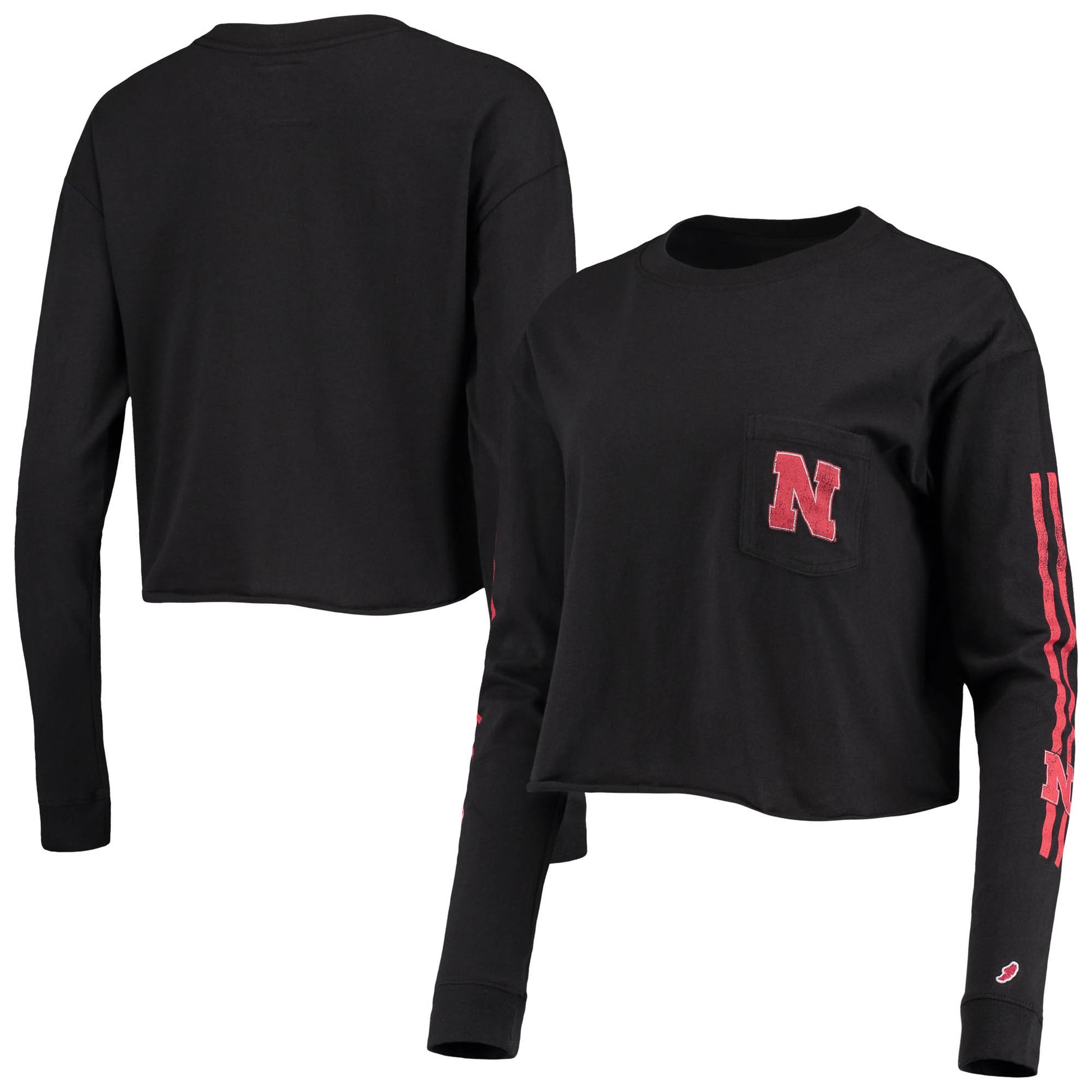 The Women's League Collegiate Wear Black Nebraska Huskers Clothesline Cotton Midi Crop Long Sleeve T-Shirt is a stylish and comfortable way to show your support for the Nebraska Huskers. Made from soft cotton, this shirt features a distressed design for a vintage look, a left chest pocket for added storage, and an unfinished hem for a touch of edge. Whether you're cheering on the Huskers at the game or just relaxing at home, this shirt is sure to become a favorite.