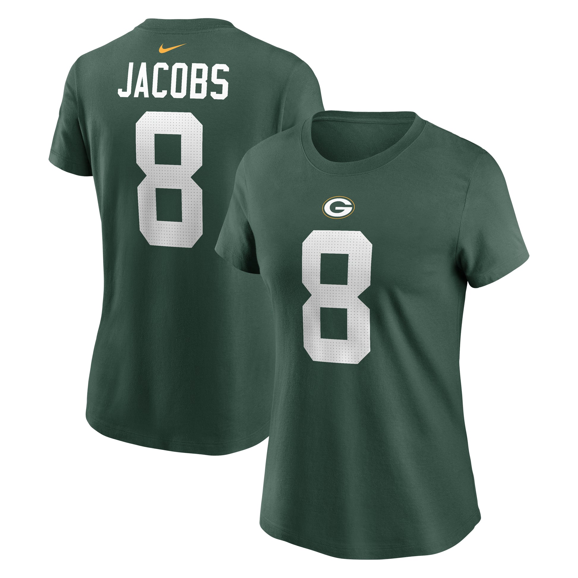 Women's Nike Josh Jacobs Green Green Bay Packers Player Name & Number T-Shirt