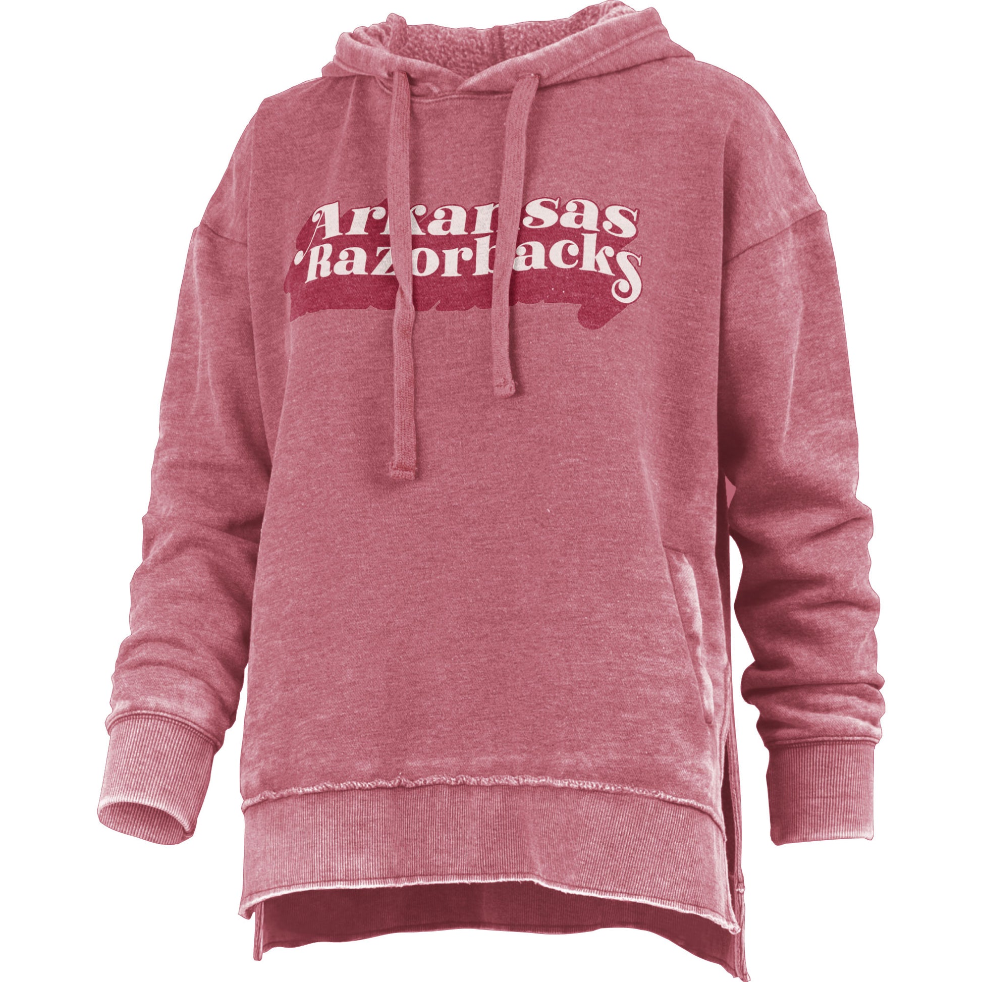 The Women's Pressbox Cardinal Arkansas Razorbacks Vintage Falkland Pullover Hoodie is the perfect way to show your support for the Arkansas Razorbacks. Made from a soft and comfortable polyester and cotton blend, this hoodie features distressed fabric and a droptail hem with side splits for a stylish and relaxed fit. The fleece lining will keep you warm on chilly game days, while the screen-print graphics will let everyone know who you're rooting for. With two side pockets and an unfinished hem and bottom outer seam, this hoodie is both functional and fashionable.