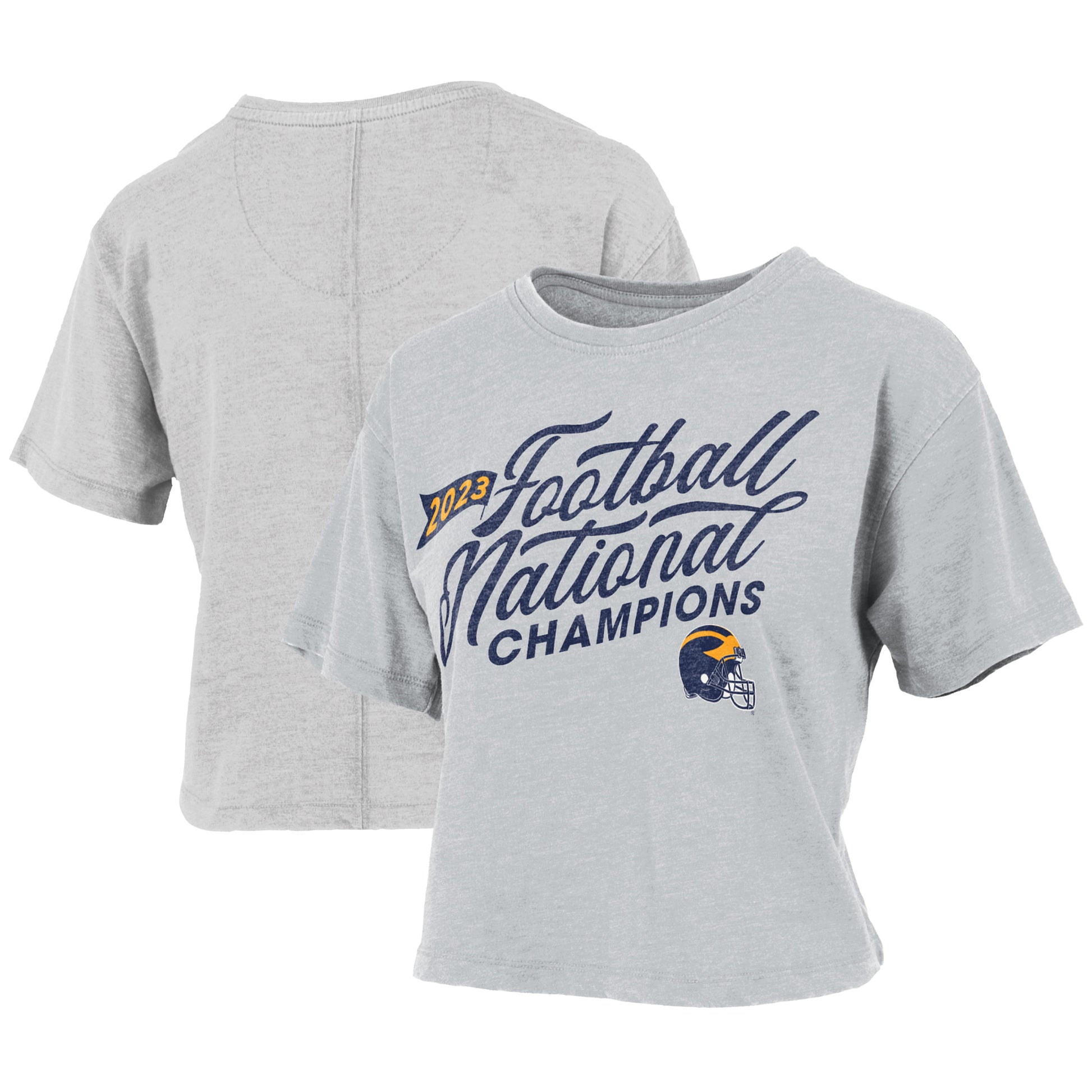 Women's Pressbox Gray Michigan Wolverines College Football Playoff 2023 National Champions Vintage Waist-Length T-Shirt