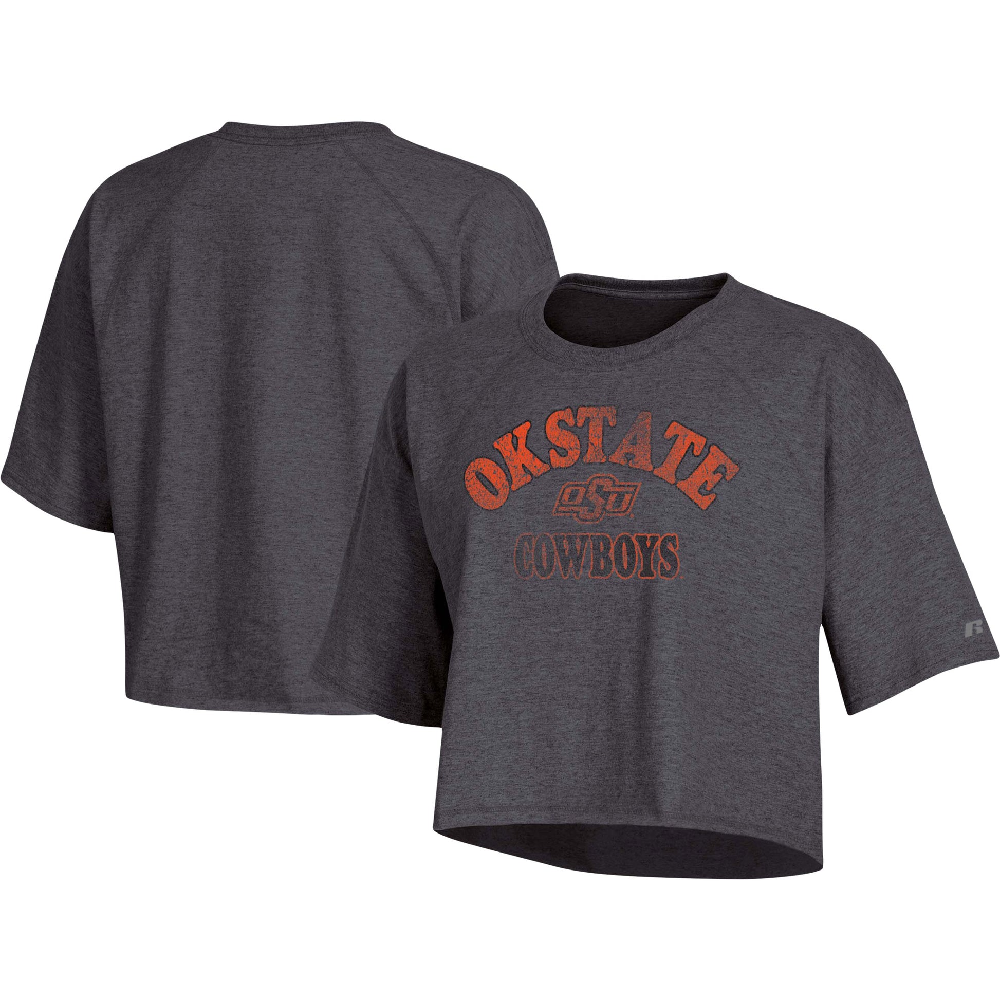 Women's Russell Heathered Charcoal Oklahoma State Cowboys Raglan Half-Sleeve Cropped T-Shirt