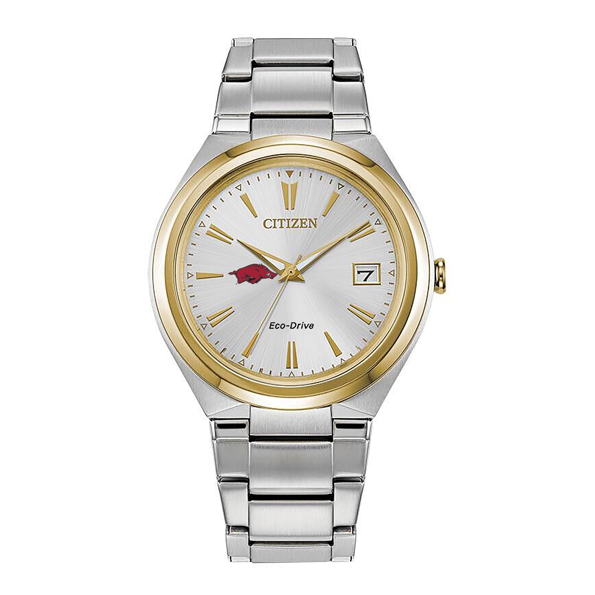 Women's Silver/Gold Arkansas Razorbacks Citizen Eco-Drive Two-Tone Watch
