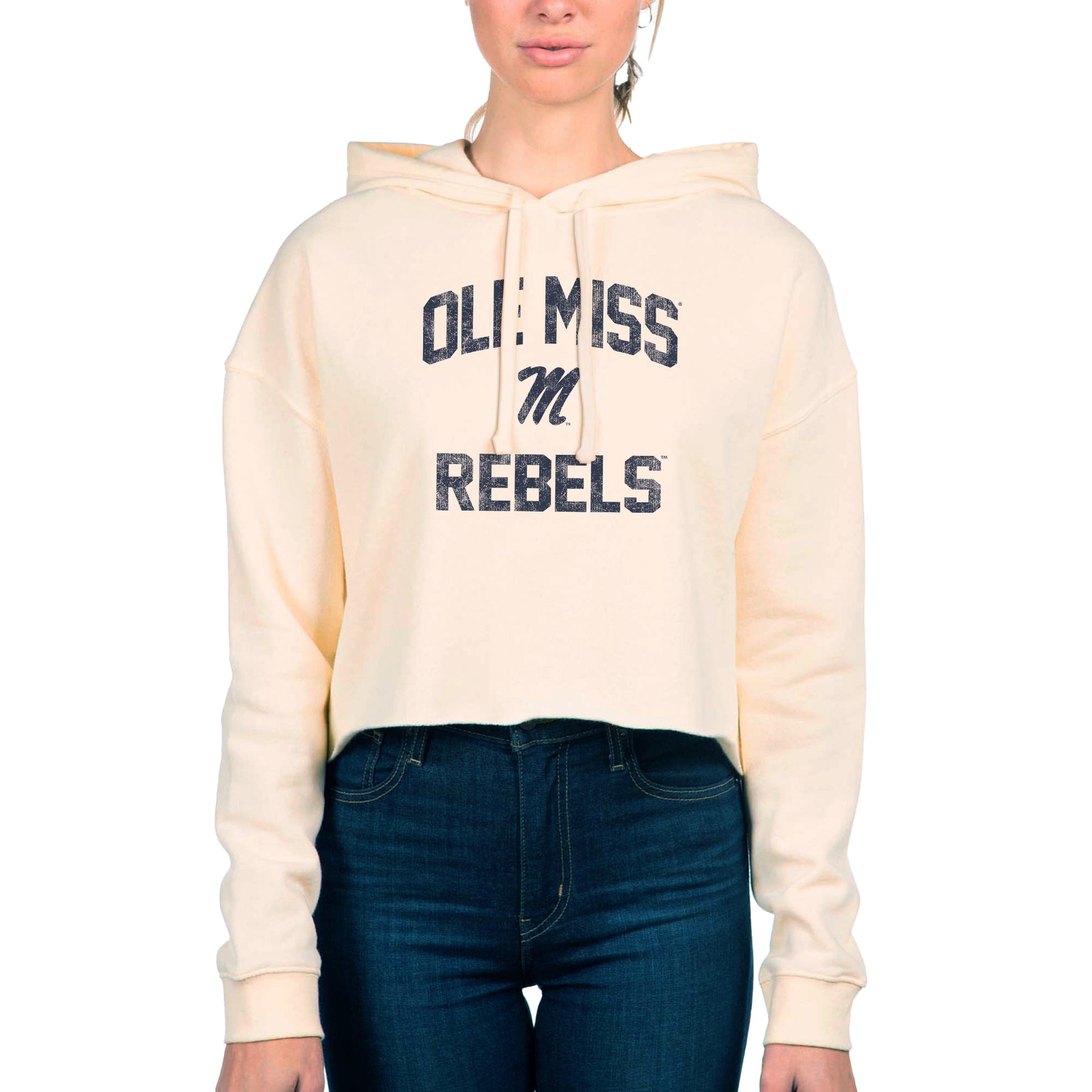 Women's Uscape Apparel Cream Ole Miss Rebels Fleece Cropped Pullover Hoodie
