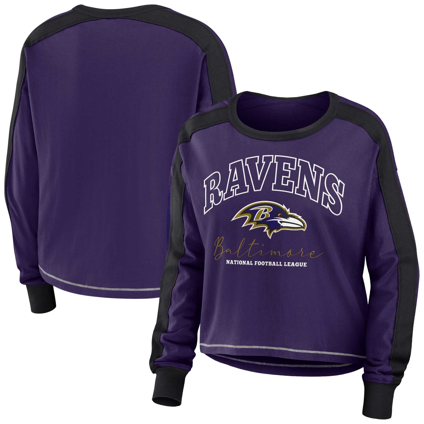 Women's WEAR by Erin Andrews Purple/Black Baltimore Ravens Color Block Modest Crop Long Sleeve T-Shirt