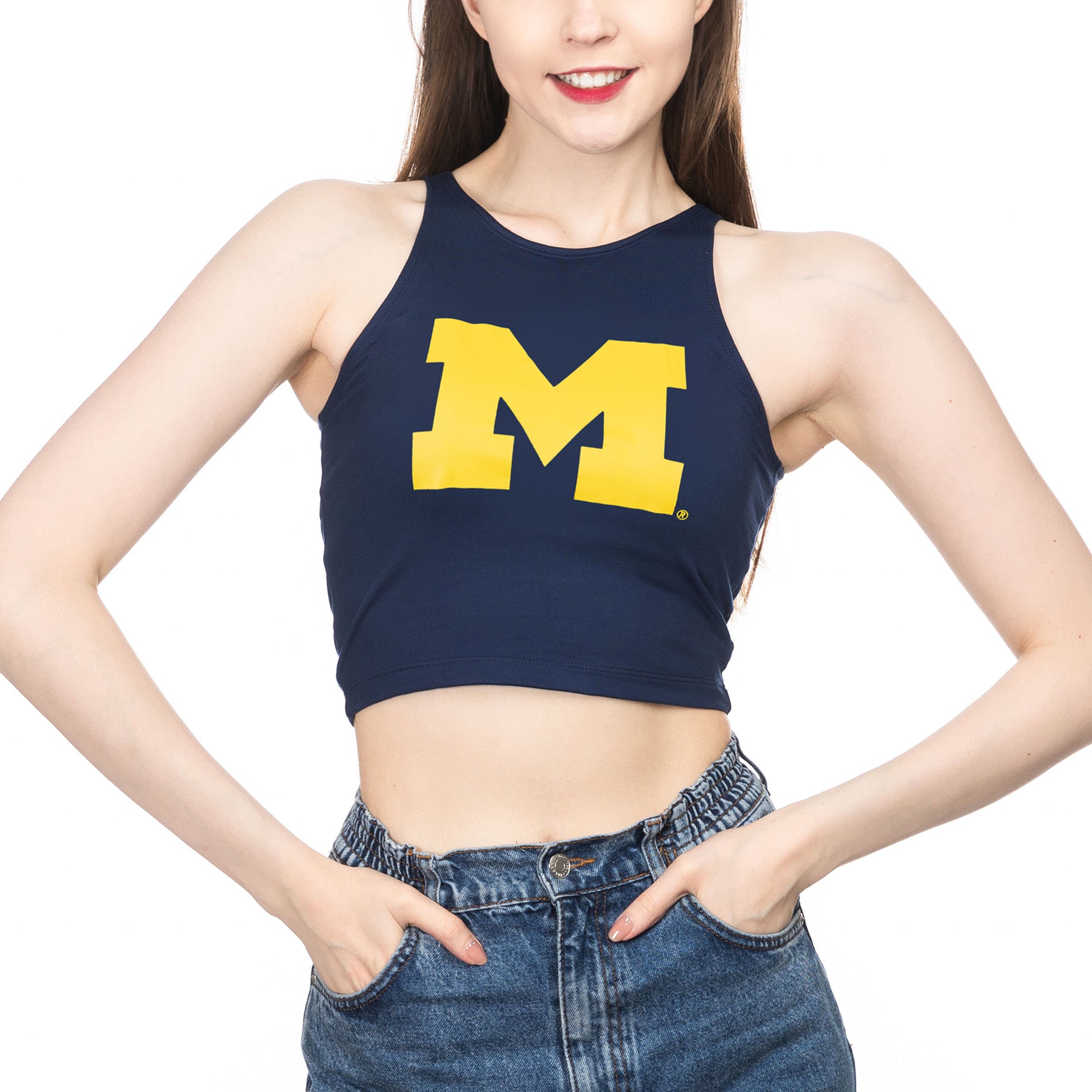 Women's ZooZatz Navy Michigan Wolverines High Neck Cropped Tank Top