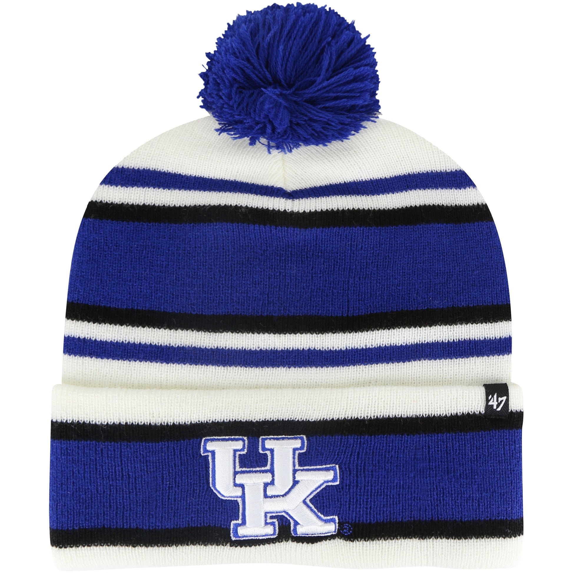 Team spirit beats out cold weather with this Kentucky Wildcats Stripling cuffed hat from '47. Its knit stripes in team colors and coordinating pom highlight the Kentucky Wildcats logo in raised embroidery. The stretch design provides a snug fit and cozy warmth.