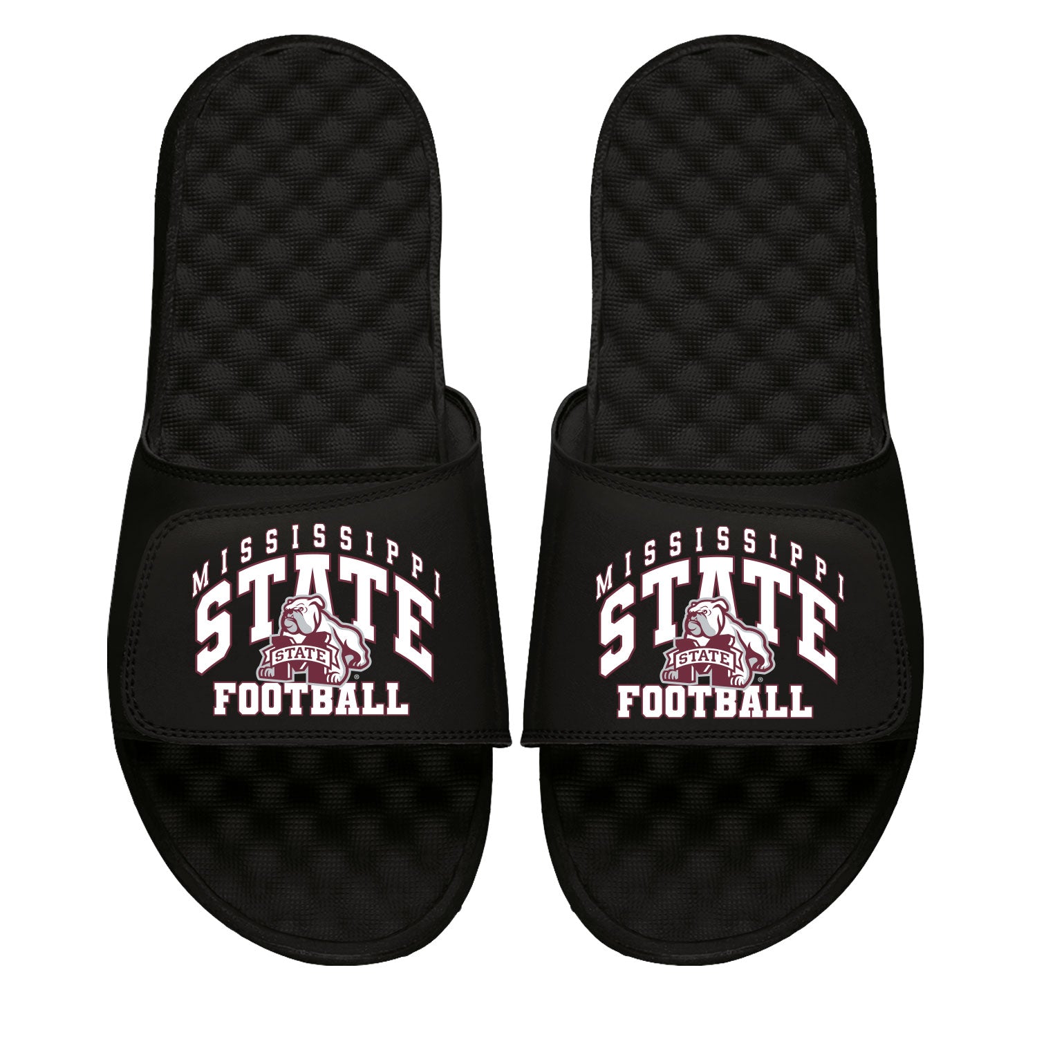 Slide your little one into Mississippi State Bulldogs game day with these lightweight ISlide Slide Sandals. The massaging footbed and adjustable strap provide a comfortable fit. Fresh Mississippi State Bulldogs graphics are custom printed by hand to give an added touch of team spirit to every step.