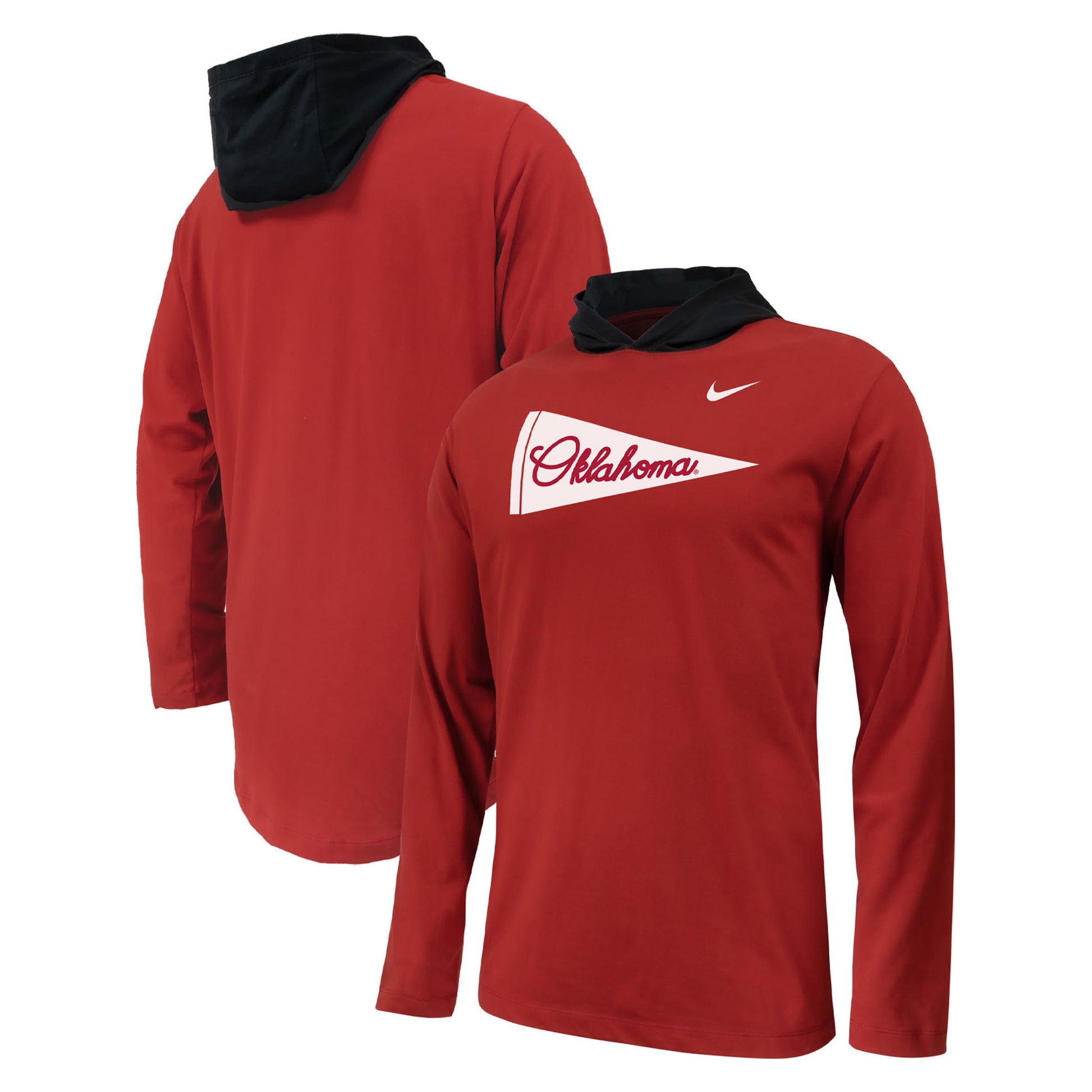 Youth Nike Crimson Oklahoma Sooners Sideline Performance Long Sleeve Hoodie T-Shirt